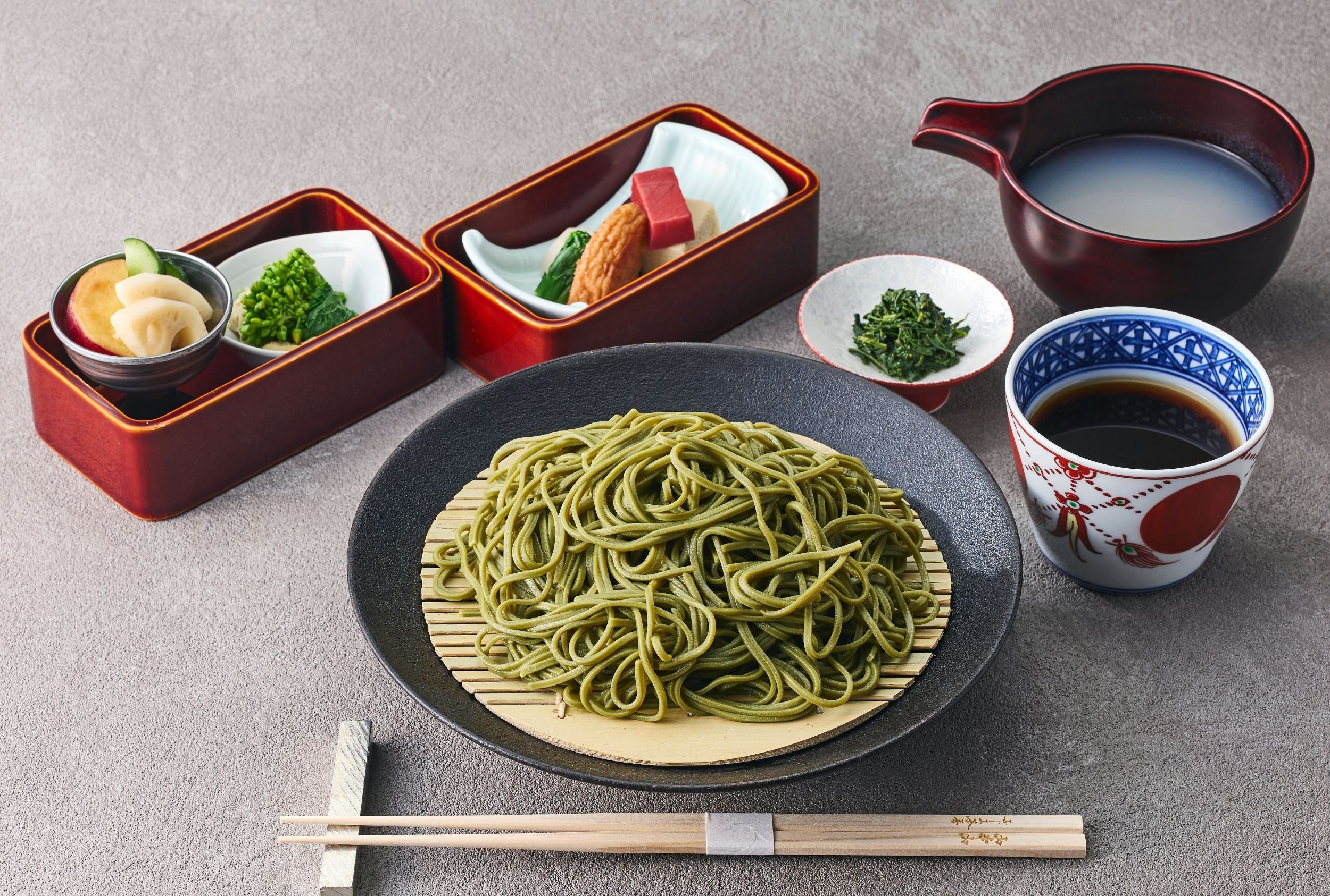 商品名:【更科堀井×山本山】玉露茶蕎麦(GR-SB)