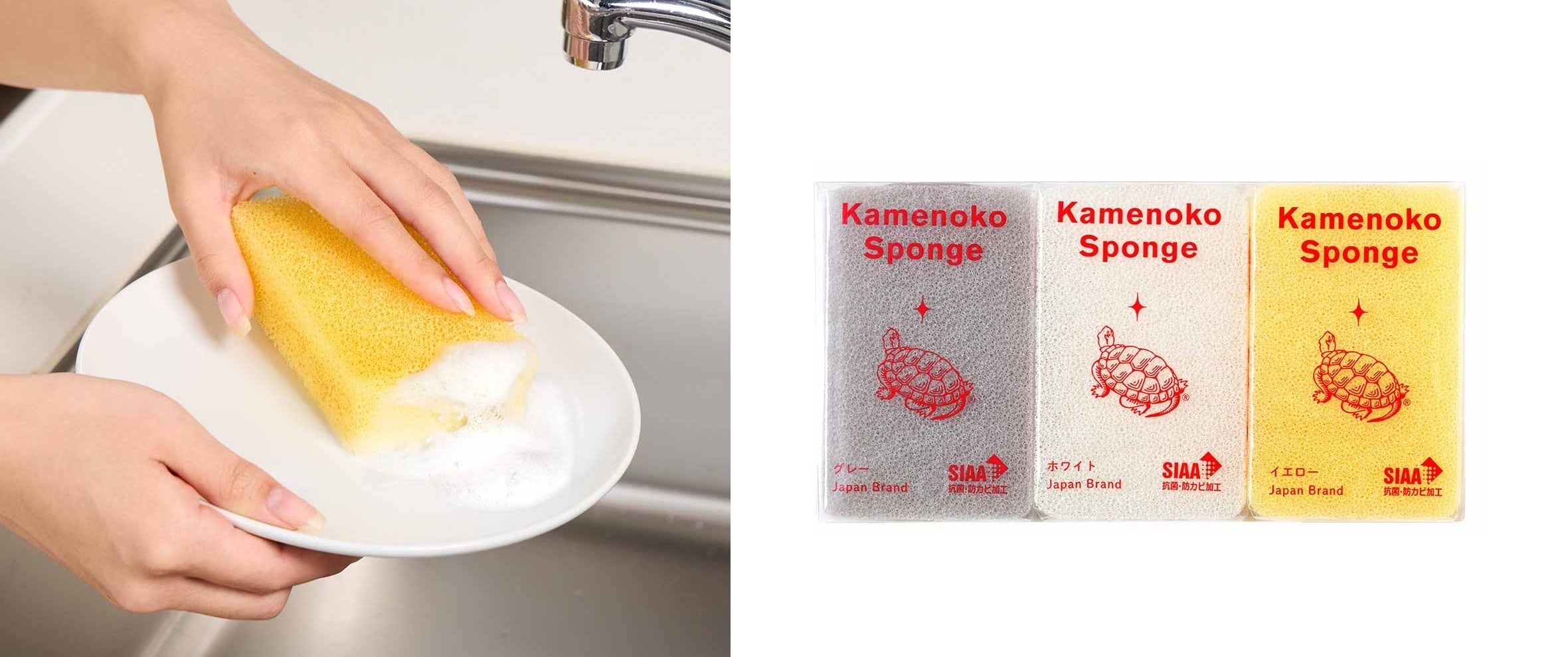 ◆銀イオンで清潔つづく。亀の子スポンジ人気3色セットの販売も