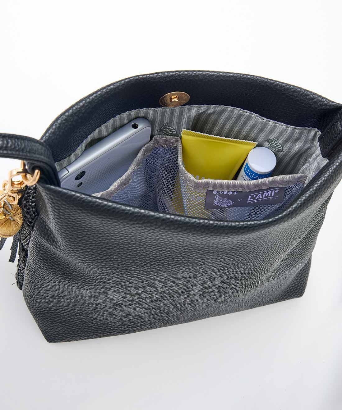 【NEW】亀の子束子×ラミプリュス ポケットみたいに使い心地軽やか ショルダーマイポッケ〈金亀&たわしチャーム付きブラック〉