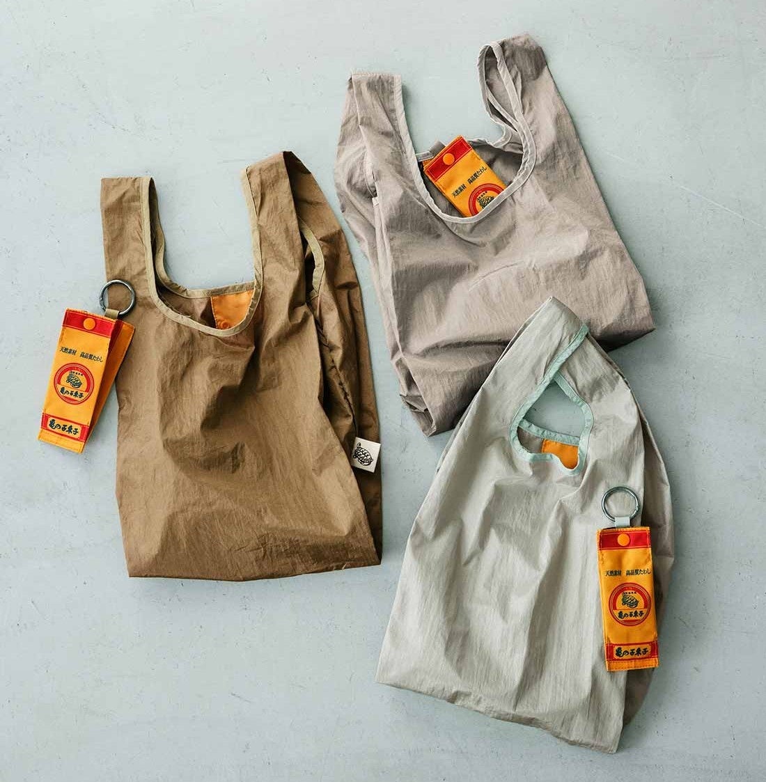 ニュアンスのある表面感がおしゃれなエコバッグは、口元のパイピングもこだわりの微配色に。エコバッグのサイドには、亀のロゴプリントタグをあしらってアクセントに。撥水加工で使い勝手もよく、亀のように「のんびりぼちぼち」な気分に寄り添ってくれるアイテムです。