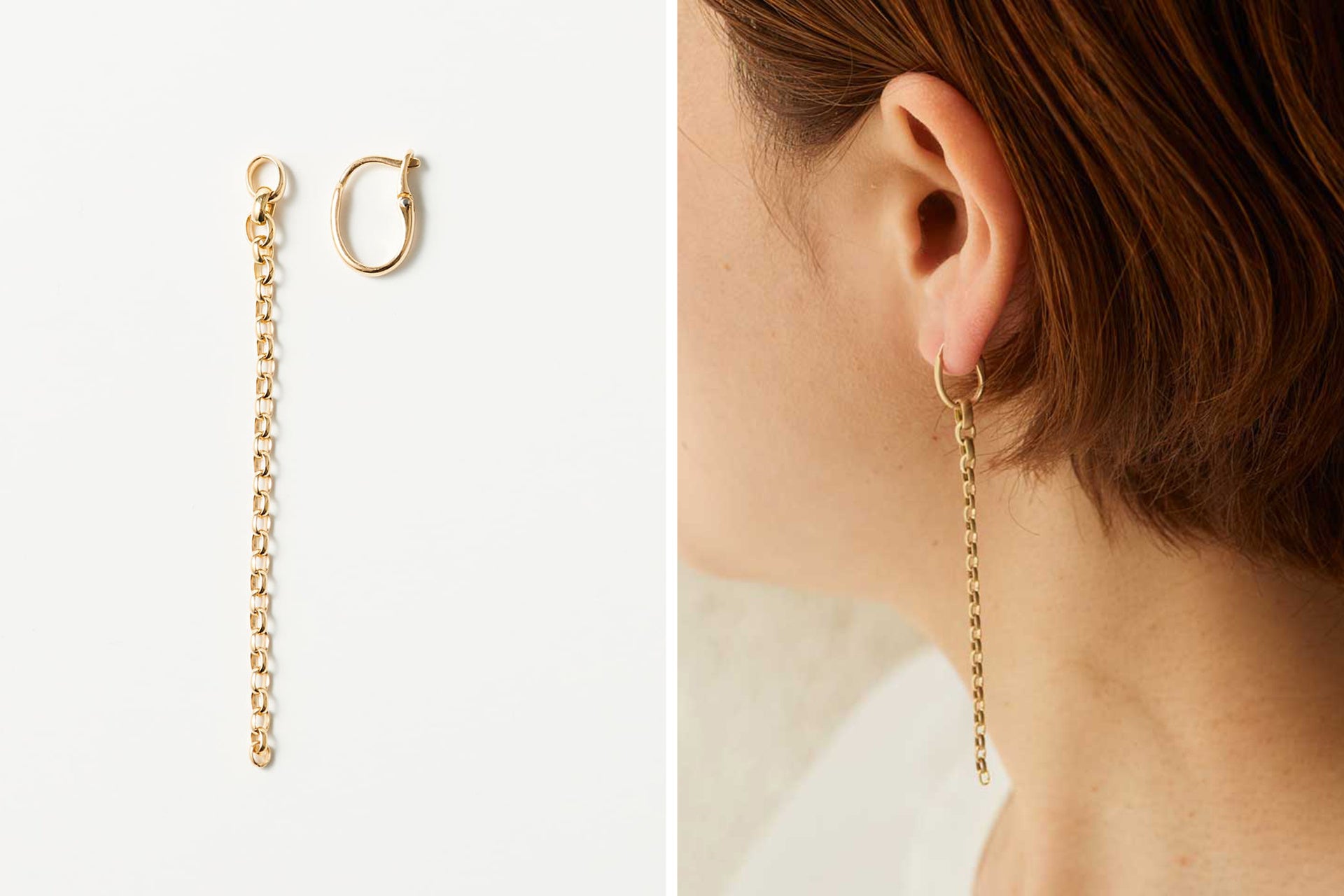 チェーンとフープピアス部分は着脱可能な構造となっており、日常使いからフォーマルまで幅広く活躍してくれます。