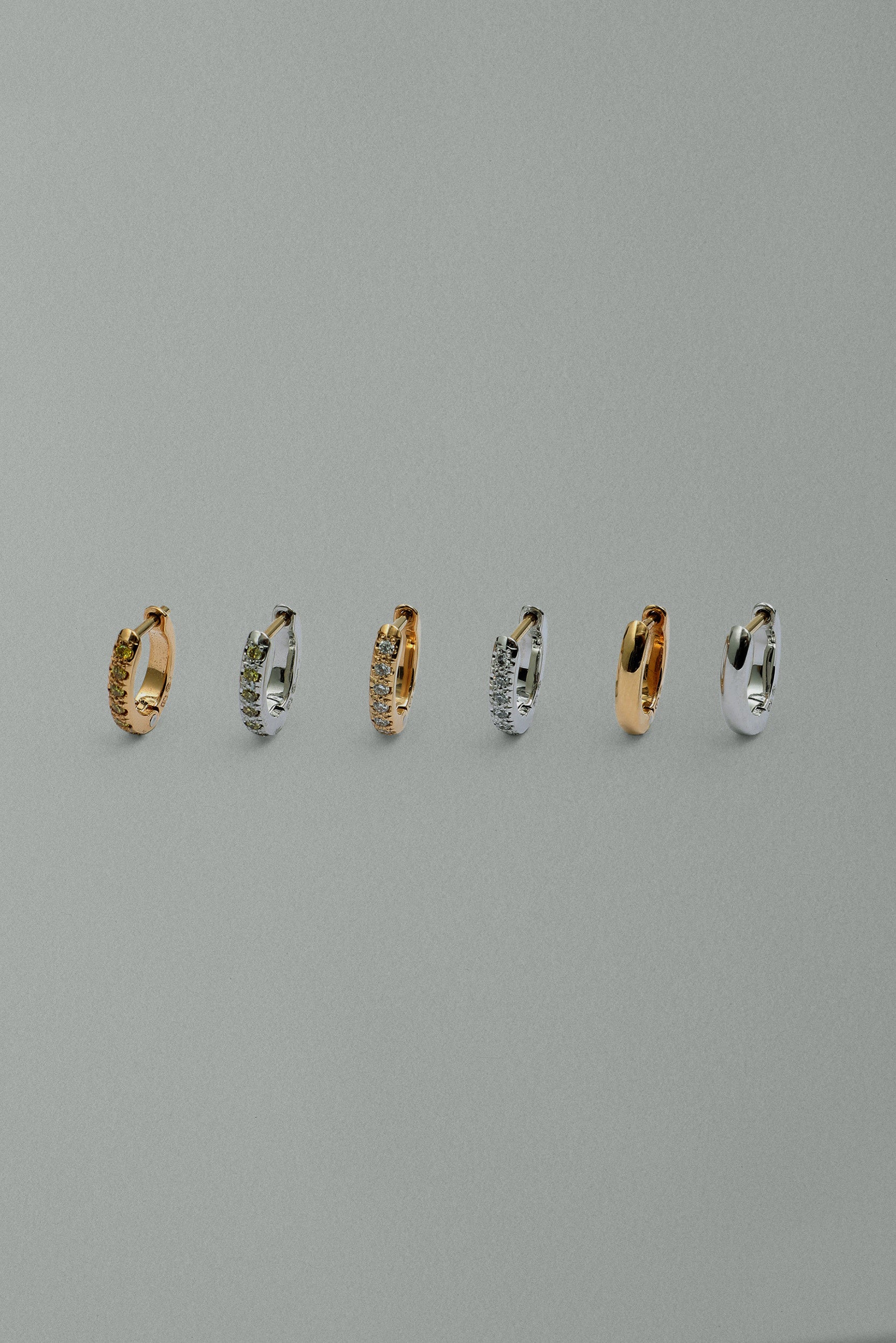 18Kイエローゴールドとプラチナの2素材展開。ダイヤモンドの有無を含む全4モデルは片耳販売のため、アシンメトリーな組み合わせも自在です。
