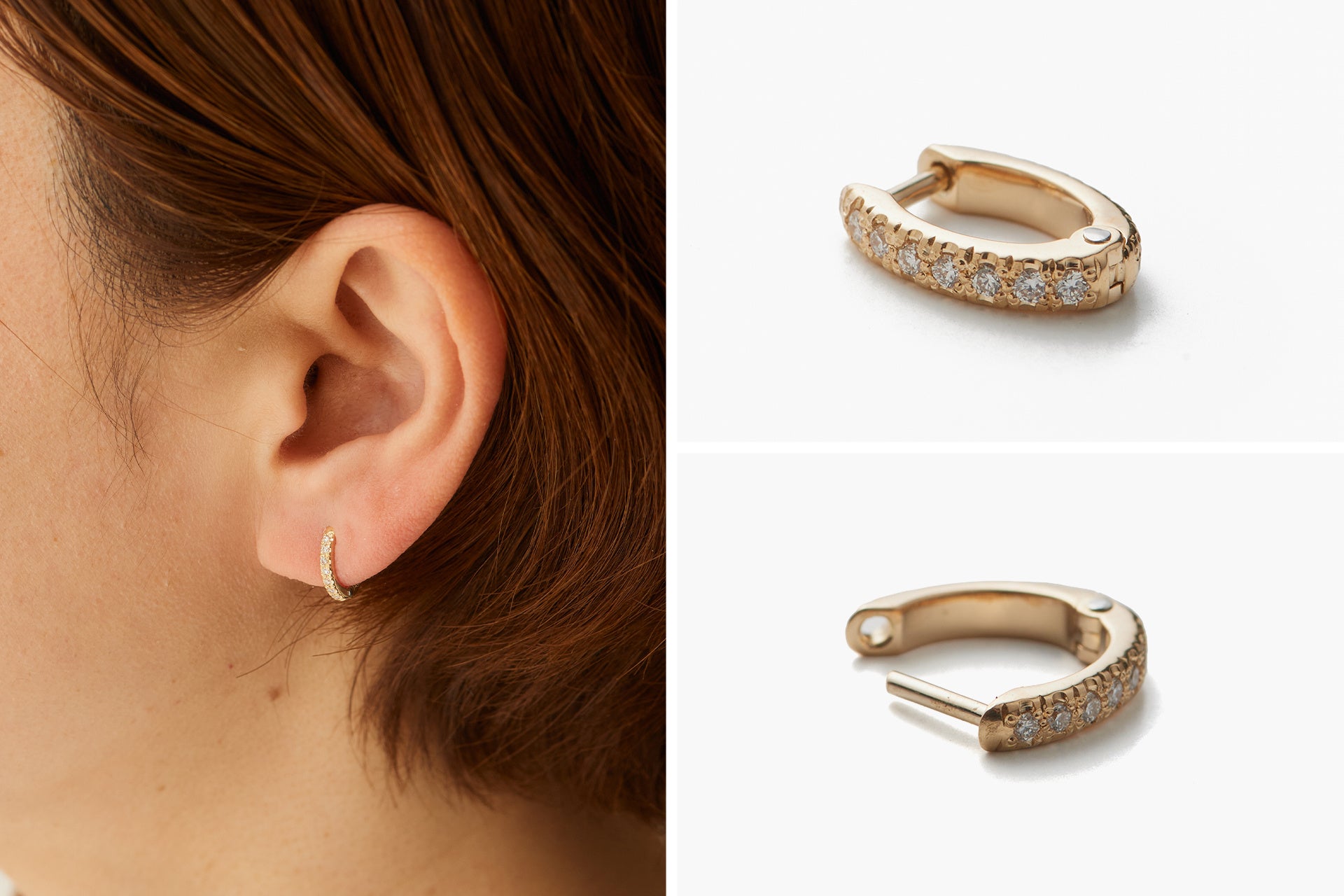 耳たぶに沿うカーブが余計な装飾のないフォルムを描き、日常にも特別な瞬間にも静かに寄り添います。