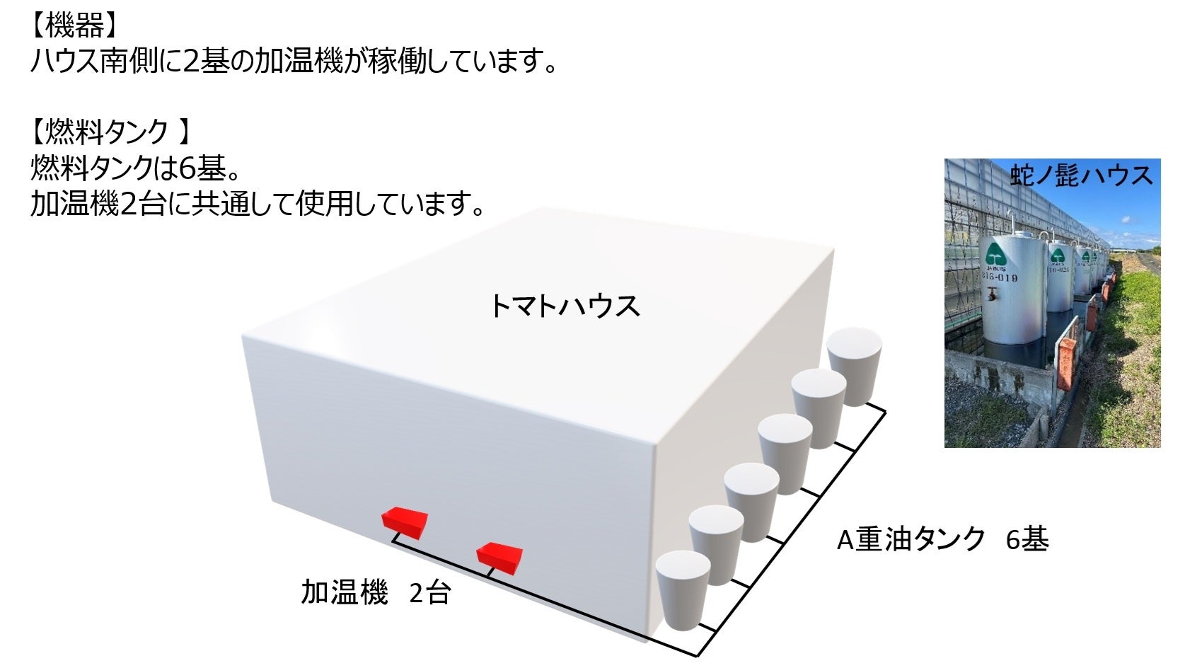 株式会社G-grow(代表 五藤 忠保 氏)は、令和4年度に開催した交流会での登壇をきっかけに、市内でミニトマトを生産している株式会社めぐりとまと(代表 伊藤 充治 氏)と協働し、燃料コストの削減及びCO2排出量の低減に向けた実証実験を行ってきました。