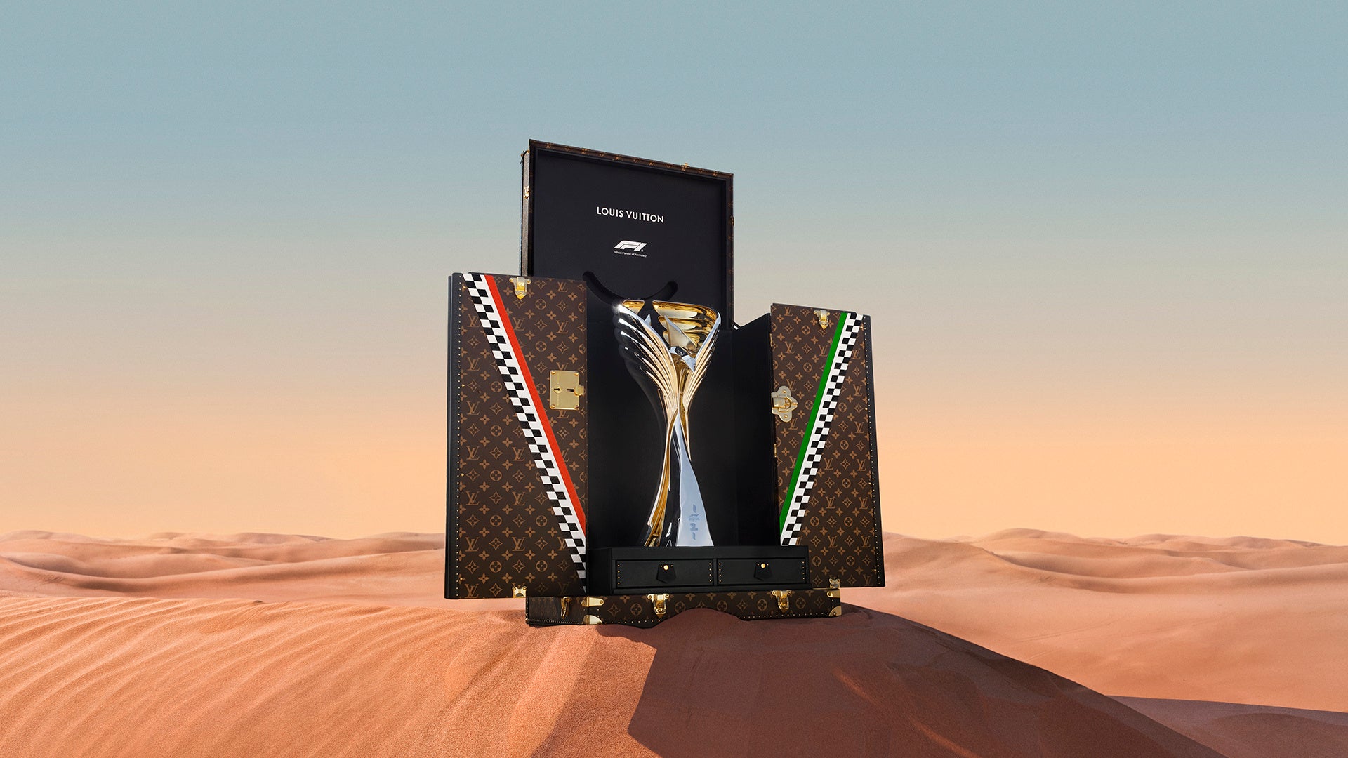 ルイ・ヴィトンの特製トロフィー・トランクに収められたフォーミュラ1(R)エティハド航空 アブダビ グランプリ 2025のトロフィーを獲得したのはマックス・フェルスタッペン