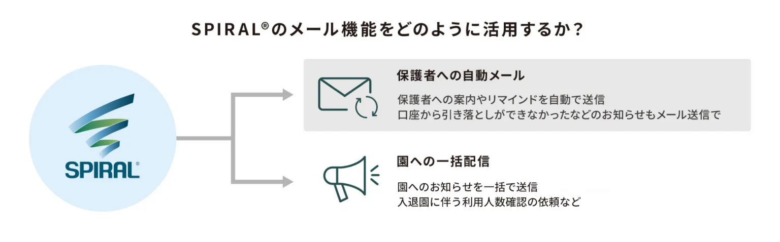 こうした背景から千趣会チャイルドケアは、「申込から情報管理・決済手続きまでの一連業務をオンライン化し、保護者と園、事業部それぞれの負担を軽減できる仕組みが必要である」と考え、システム導入を決定しました。年度切り替え前までという厳しいスケジュール下で、ヒアリング力・提案力・セキュリティ実績が評価され、「SPIRAL ver.1」をご選定いただきました。