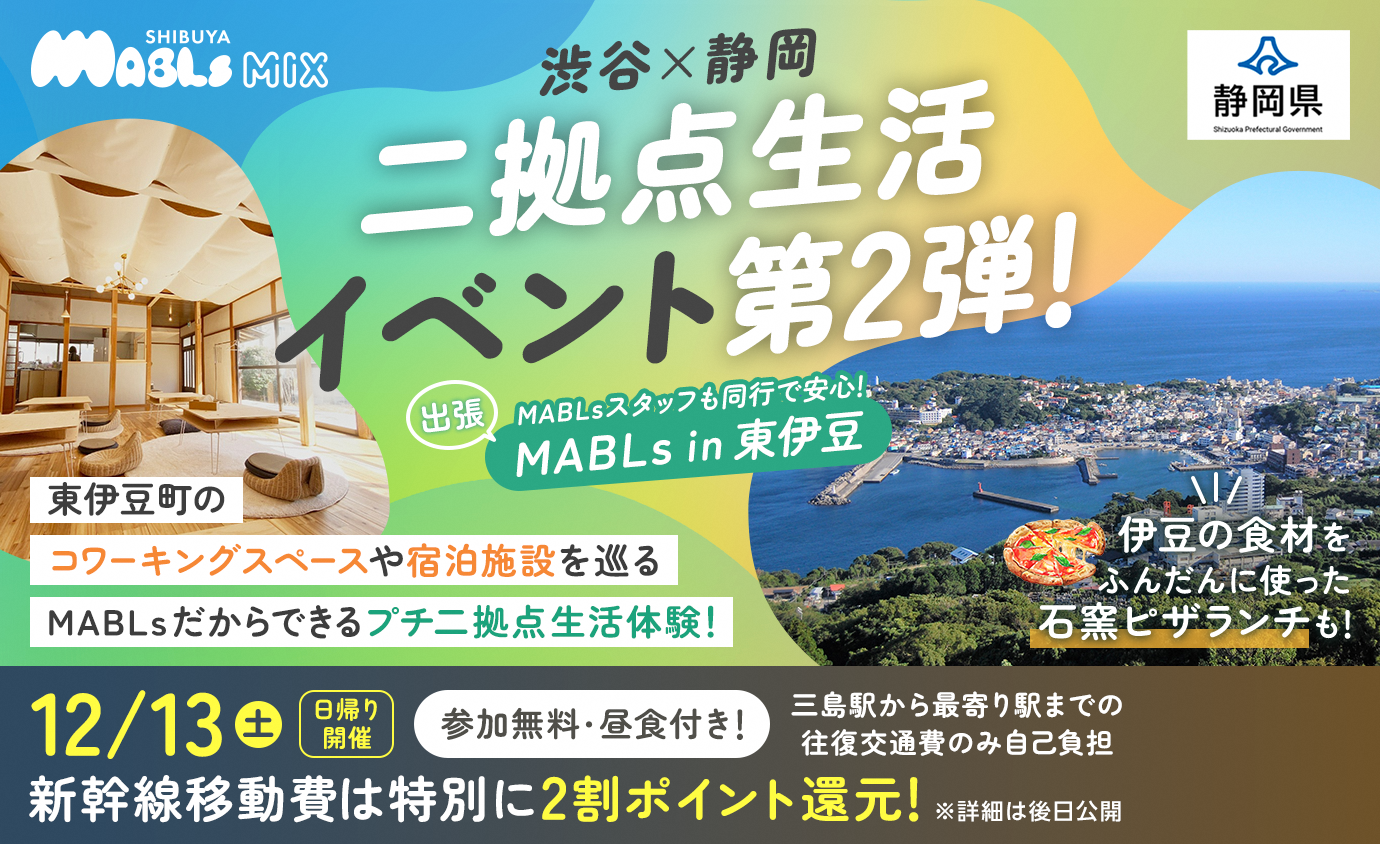 ・イベントが好評だったこと等を踏まえ、令和7年12月13日(土)に、イベントの第2弾として「SHIBUYA MABLs」のアプリユーザーに対して、東伊豆町で二拠点生活を体験するイベントを開催します。
