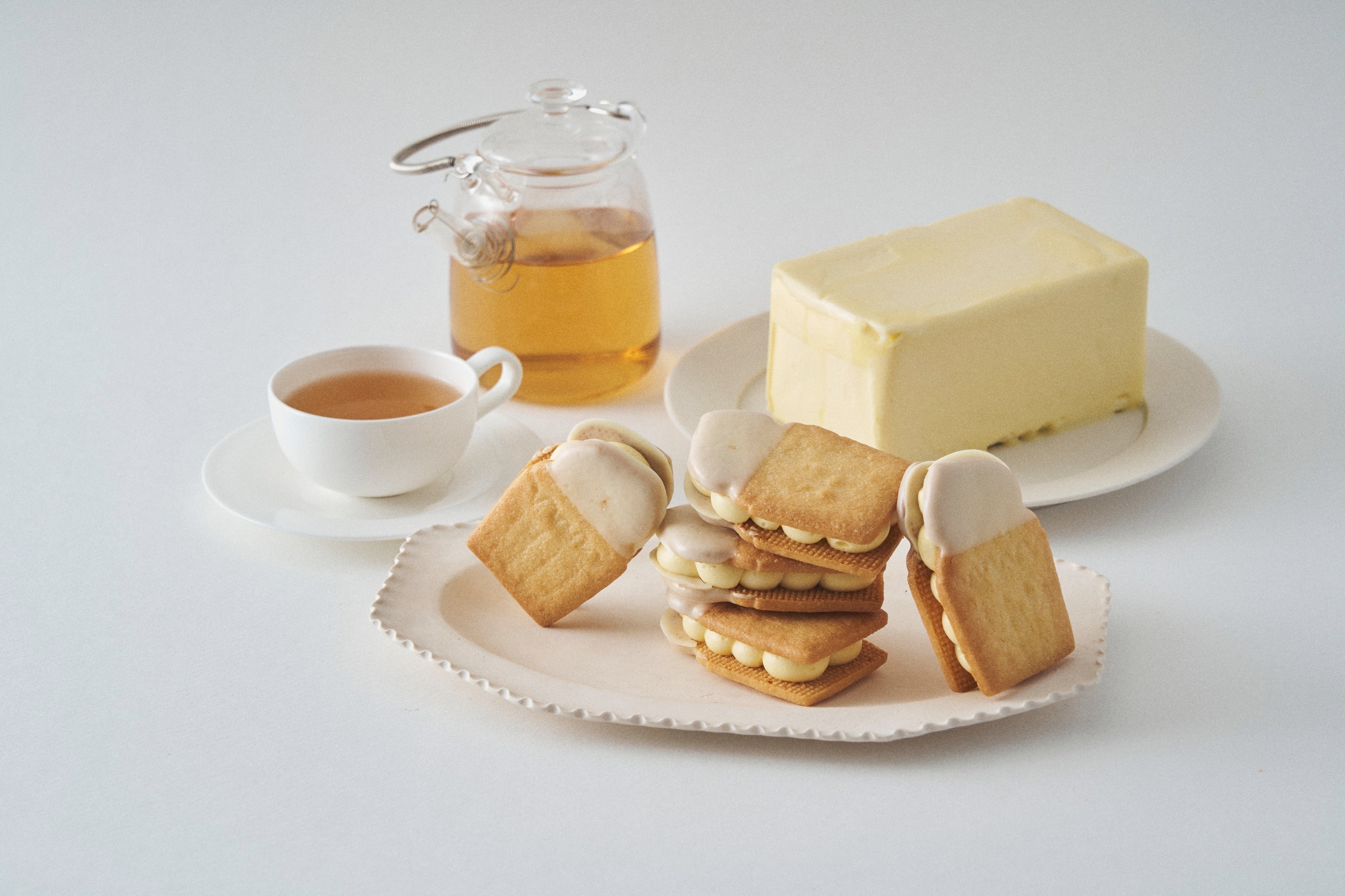 [画像3: https://prcdn.freetls.fastly.net/release_image/14421/360/14421-360-a5dda5b27eb439cf6f458e4de0f726f4-3500x2333.jpg?width=536&quality=85%2C75&format=jpeg&auto=webp&fit=bounds&bg-color=fff ]主役には、酪農の名産地として知られるフランス・ノルマンディ産の発酵バターを使用。バターそのもののおいしさをまっすぐ味わうために、シンプルな材料だけでつくり上げました。たっぷりと贅沢に使用した発酵バターの生バタークリームを、香ばしく焼き上げたビスケットでサンド。芳醇バターのミルキーな甘みが軽やかにとろける、とっておきの贅沢生バターサンドです。