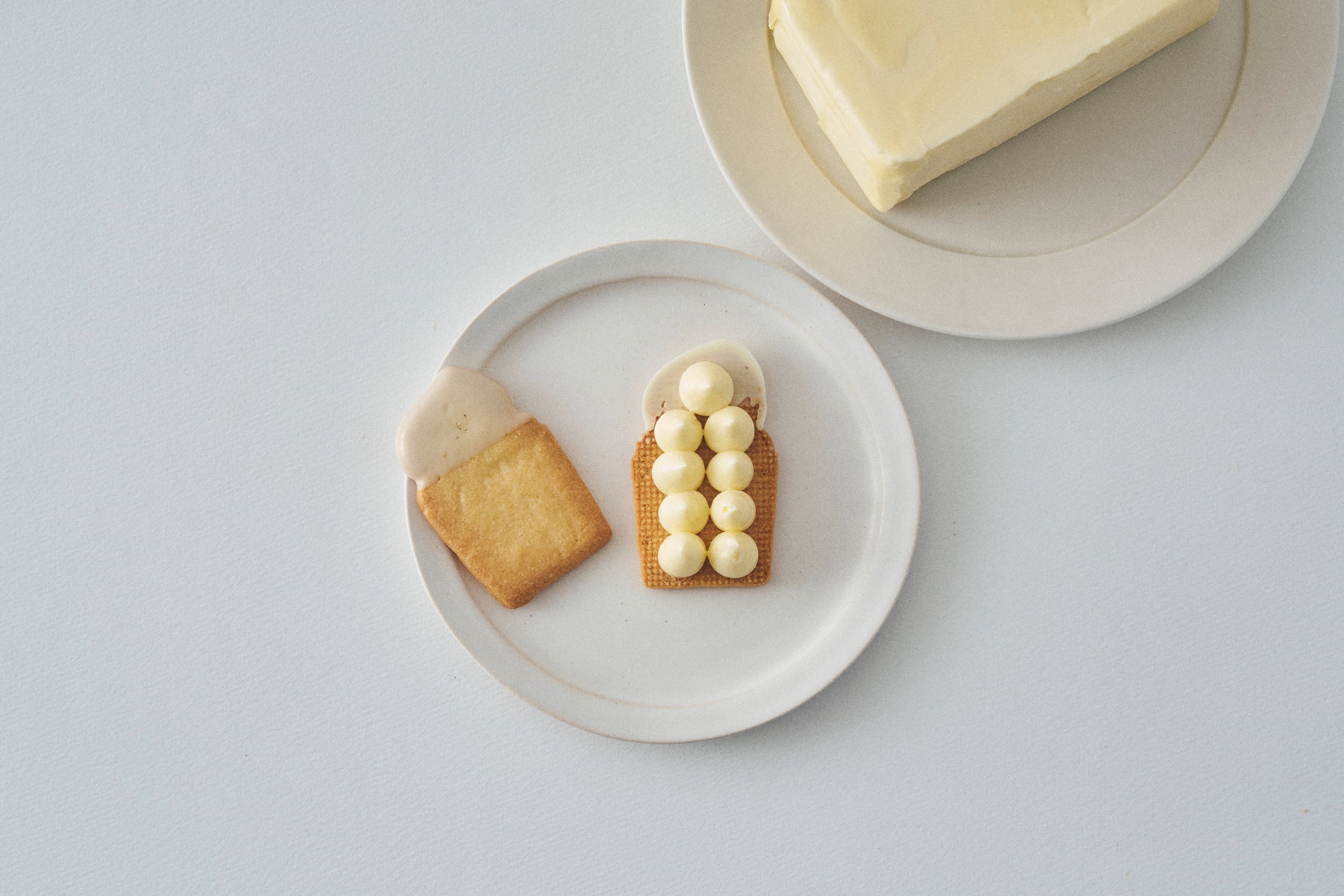 ◎ミルキーなコクと香ばしさをつなぐ、ホワイトチョコの甘み。ビスケットには、ホワイトチョコレートをハーフコーティング。チョコの甘みを足すことで、ビスケットの香ばしさと生バタークリームコクをつなぎます。コクとやさしい甘さが寄り添いながら、ビスケットの香りと生バターのミルキーな余韻。最後までバターのおいしさが主役であり続ける、とろけるしあわせをお楽しみください。