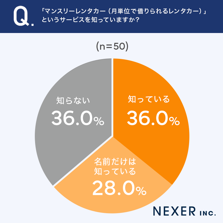 ■36%が、マンスリーレンタカーのサービスを「知っている」と回答