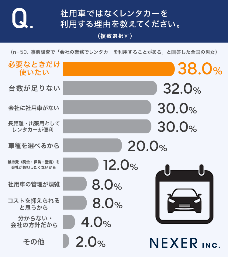 まずは、業務で社用車ではなくレンタカーを利用する理由を調査しました。