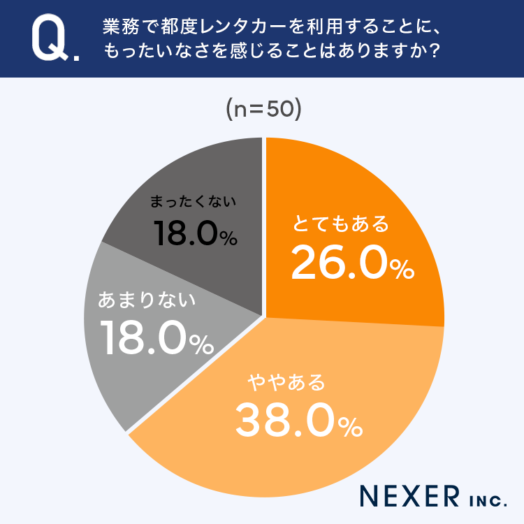 業務で都度レンタカーを利用することに、もったいなさを感じることがあるかを聞いてみました。