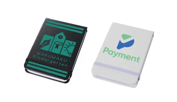 一般的な紙製カバーではなく、高級感のあるPU素材の合皮カバーを使用。ビジネスシーンでの配布物としても印象が良く、ブランド価値を高めるノベルティとして人気です。