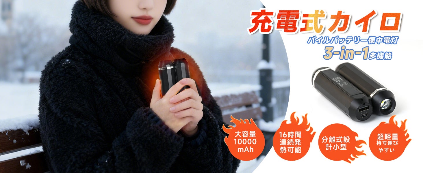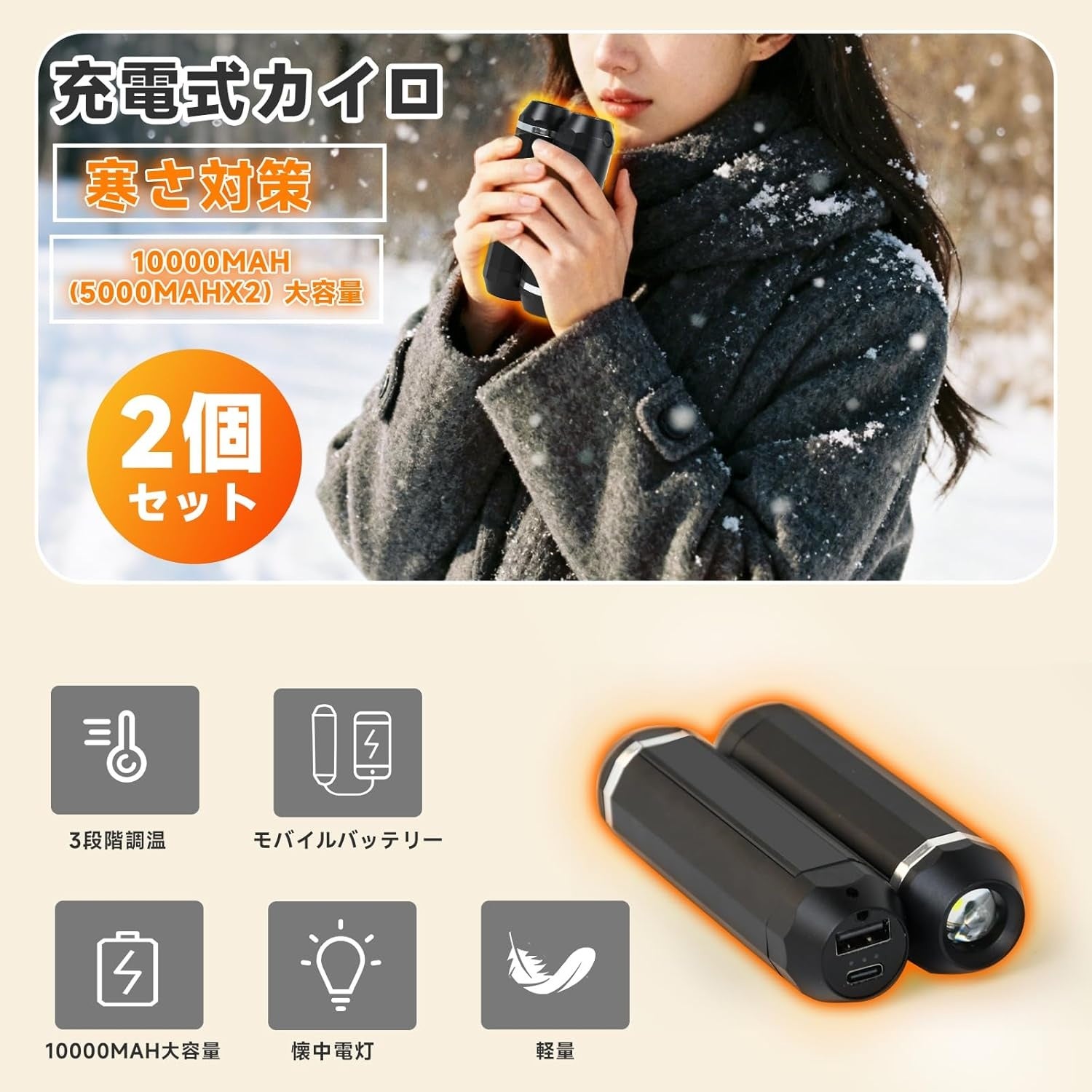 充電式カイロ 360°全面発熱の新基準!懐中電灯 3-in-1多機能 大容量10000mAh 16時間連続発熱可能 分離式設計 持ち運びやすい PSE認証済