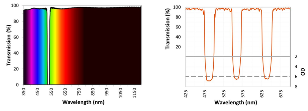 急峻なエッジ、深いブロッキング、および 100% に近い広範囲の透過率を備えたマルチノッチフィルター