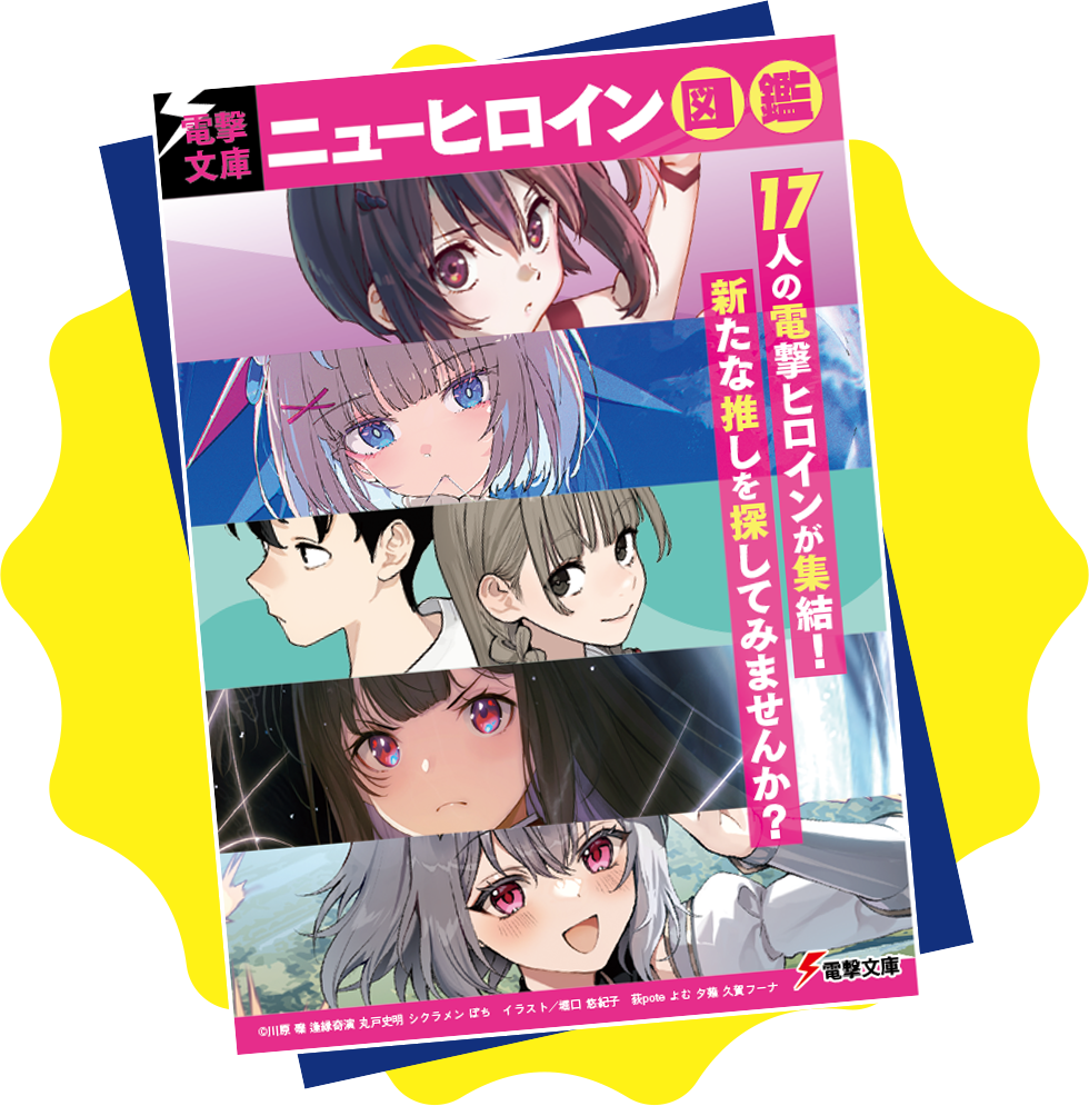 フェア参加書店では、対象書籍を購入毎に「限定SS(ショートストーリー)ステッカー」をプレゼントのほか、特製チラシ「電撃文庫 ニューヒロイン図鑑」を配布します。