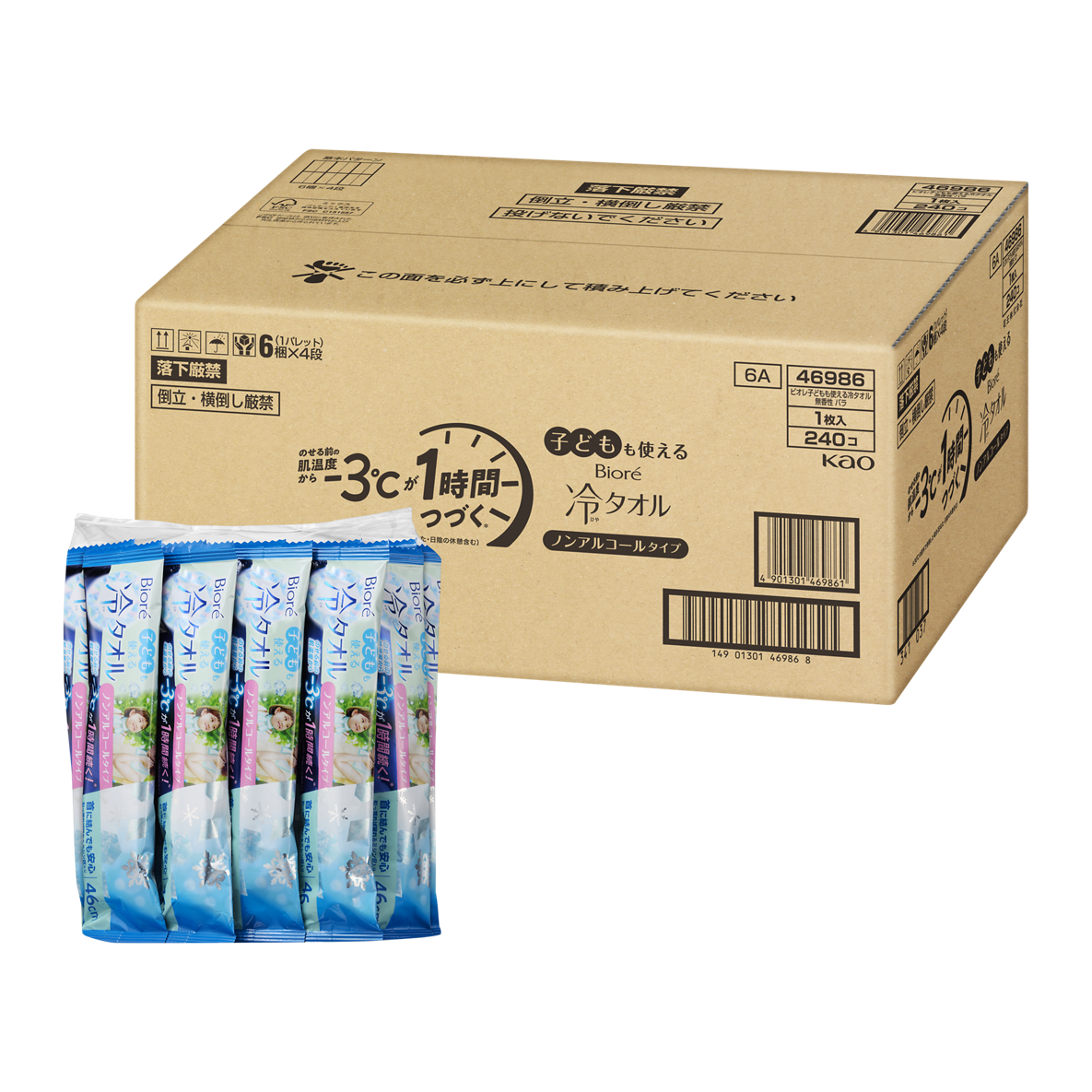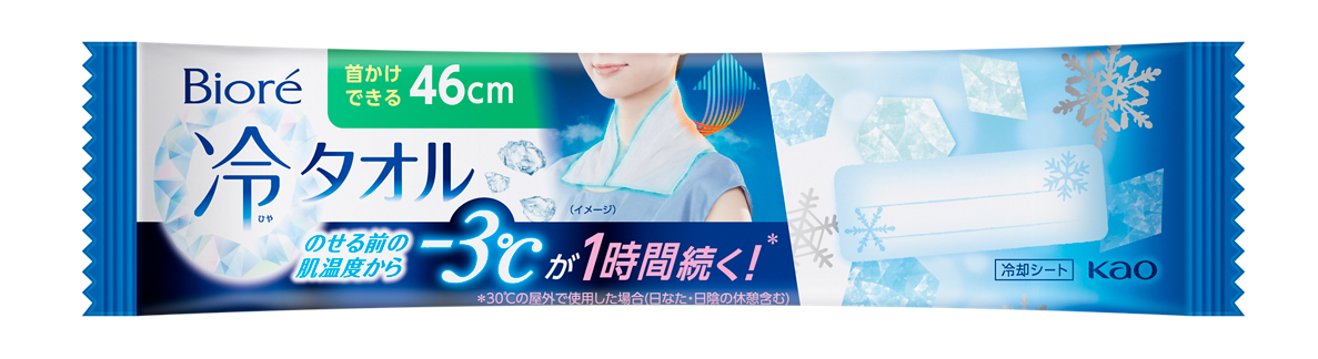 販売商品である『ビオレ 冷タオル』は、のせる前の肌温度から-3℃が1時間続く*1冷却シートです。