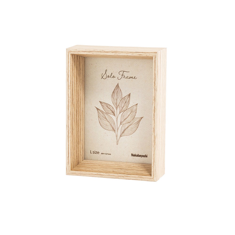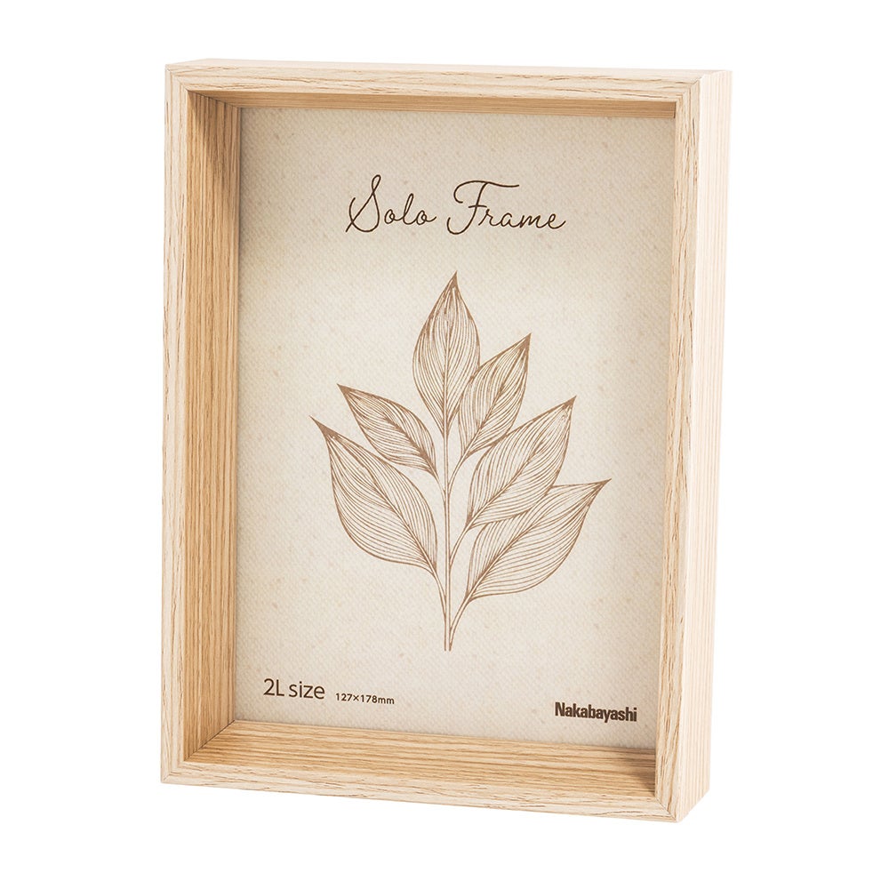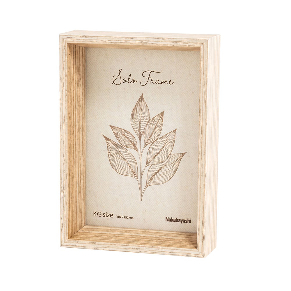 「ソロフレーム」は自立することができ、重ねて置くこともできる木製フォトフレームです。一般的なフォトフレームと異なりスタンドがなく、奥行が40mmあるため振動に強く、安定感があります。