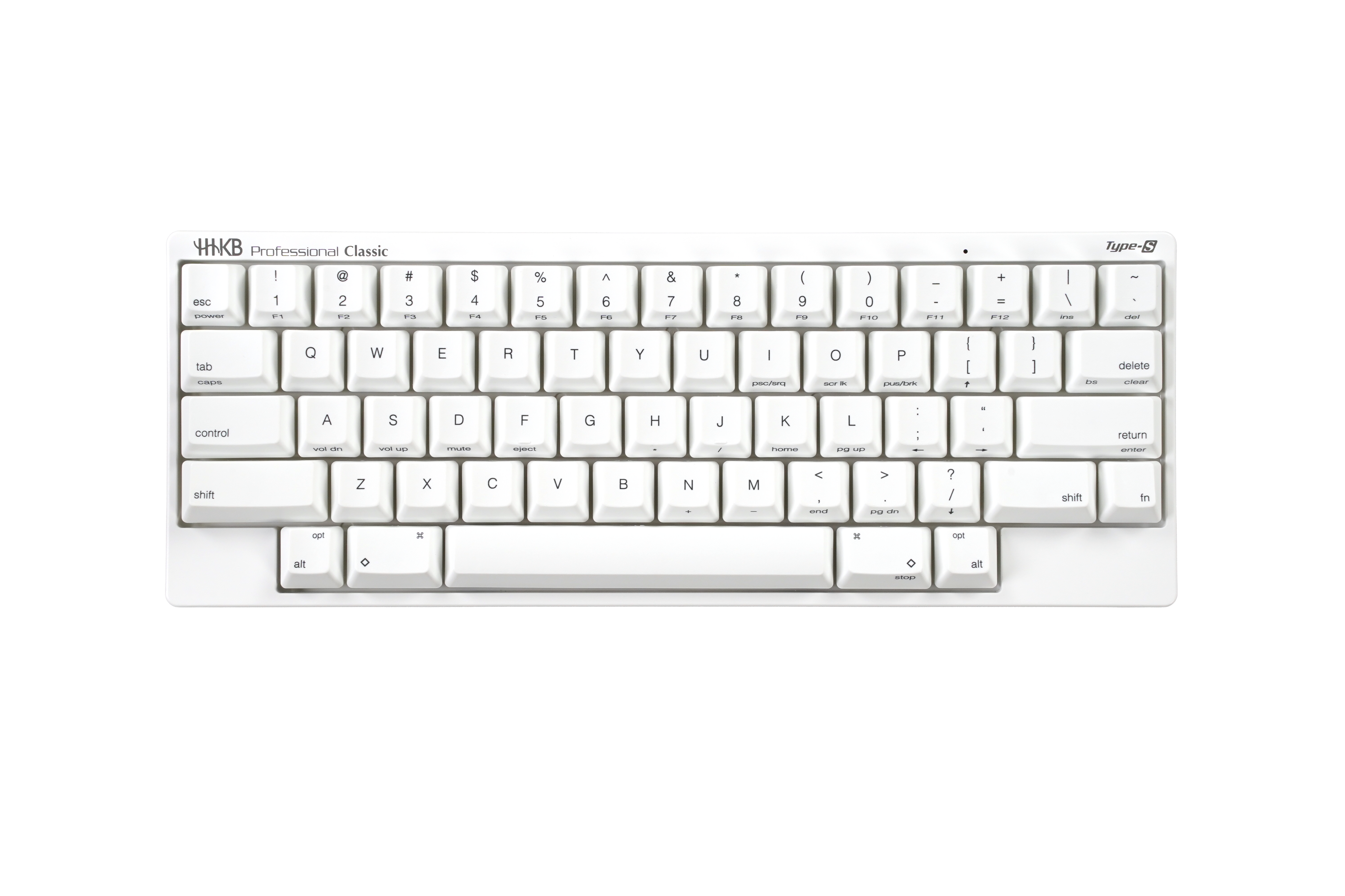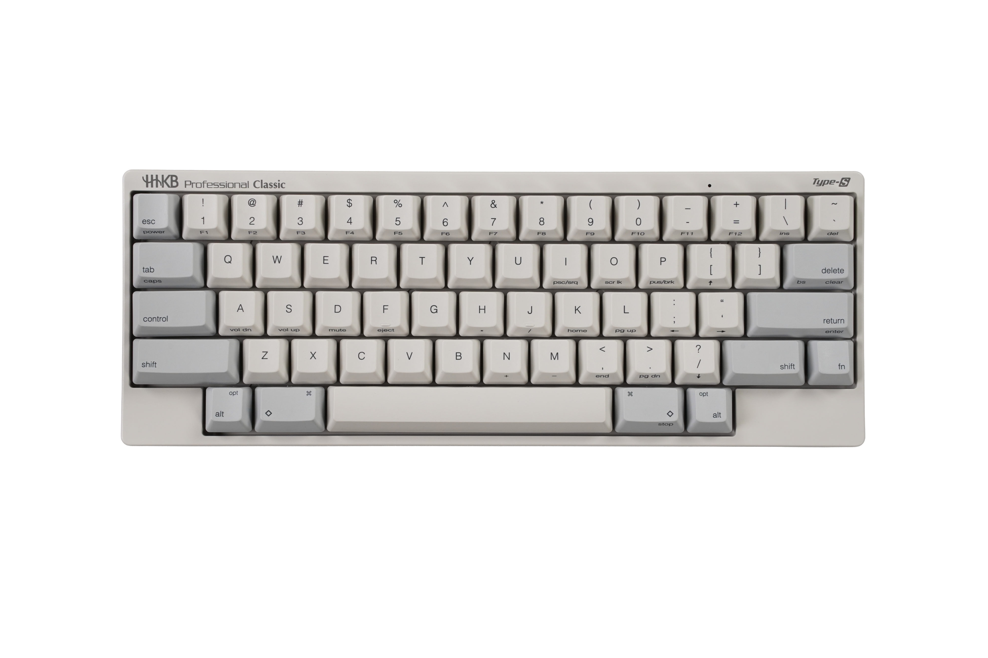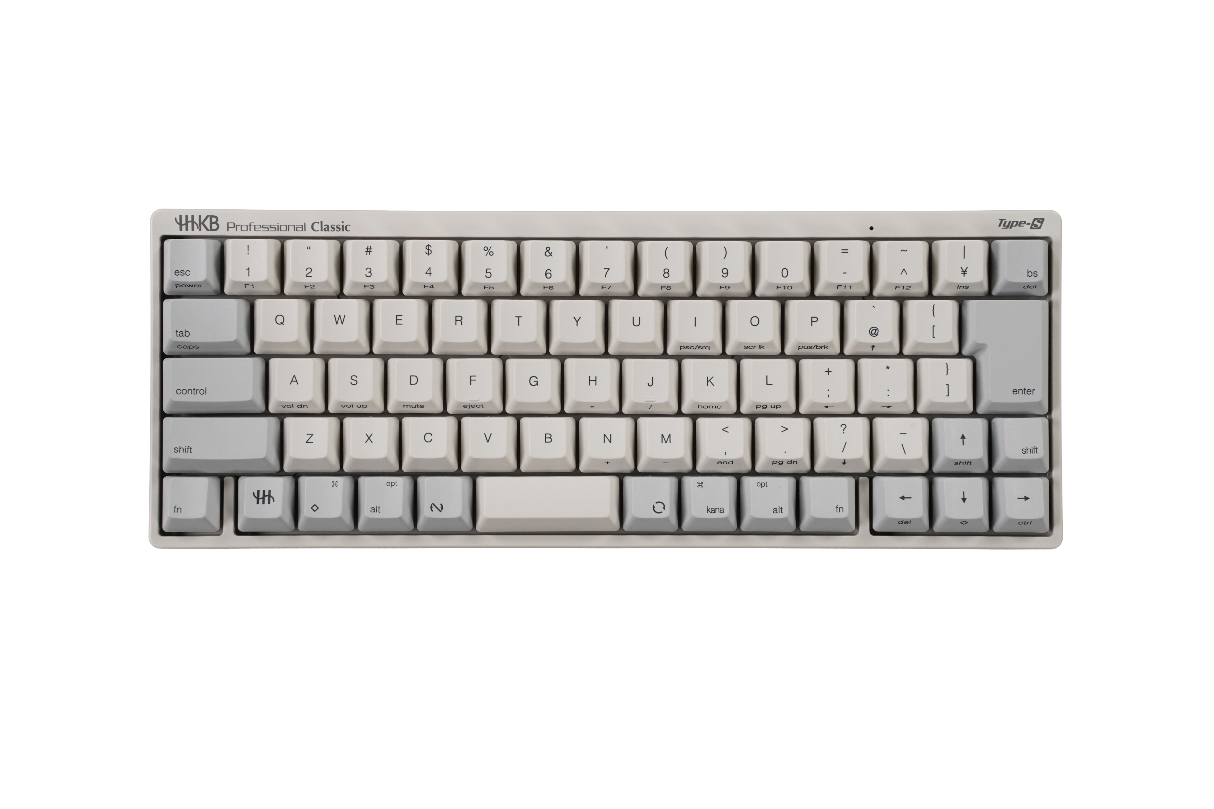 HHKB Professional Classic Type-Sは、最上位モデルと同じ「Type-S」キー構造を採用したUSB接続(Type-C)専用モデルです。初代モデルのフォルムをオマージュした電池不要のミニマルなデザインかつ、スタイリッシュな中央印字キートップを標準搭載。ユーザーの好みに合わせて使い勝手を高めることができるキーマップ変更ツールにも対応しています。