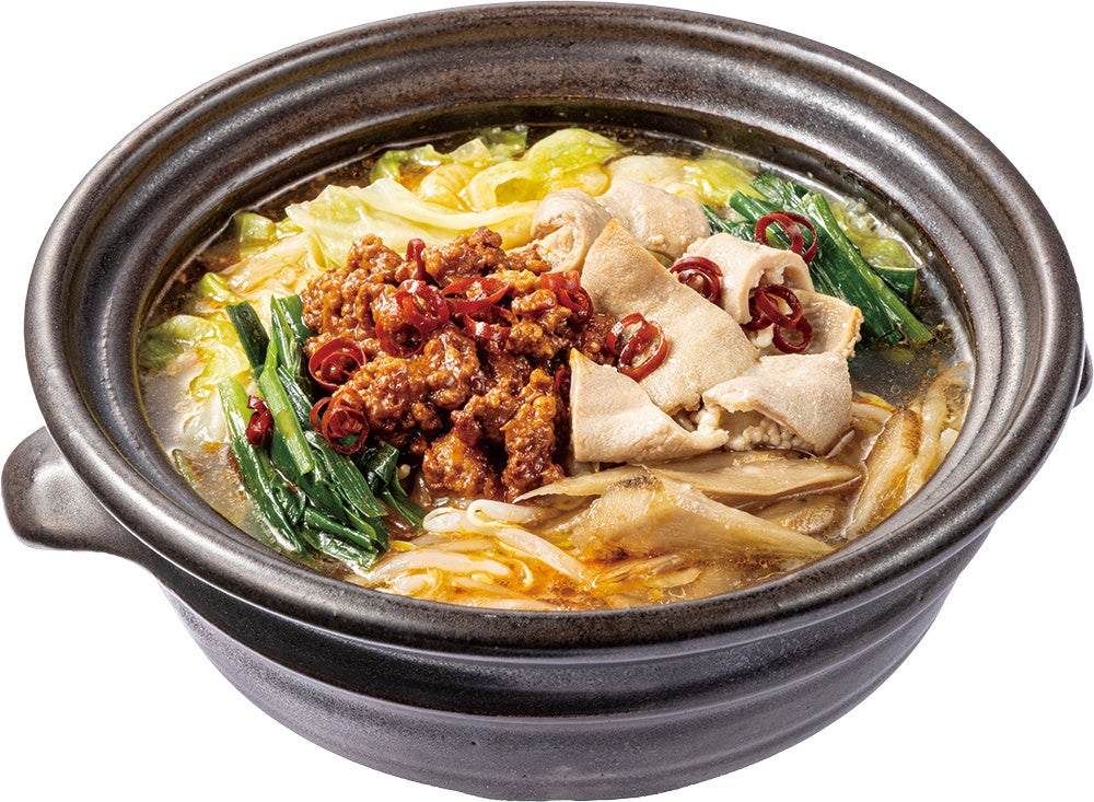 鰹だしとお肉の旨味が感じられる醤油味のもつ鍋に、唐辛子の辛さがクセになる台湾ミンチを組み合わせた鍋惣菜です。