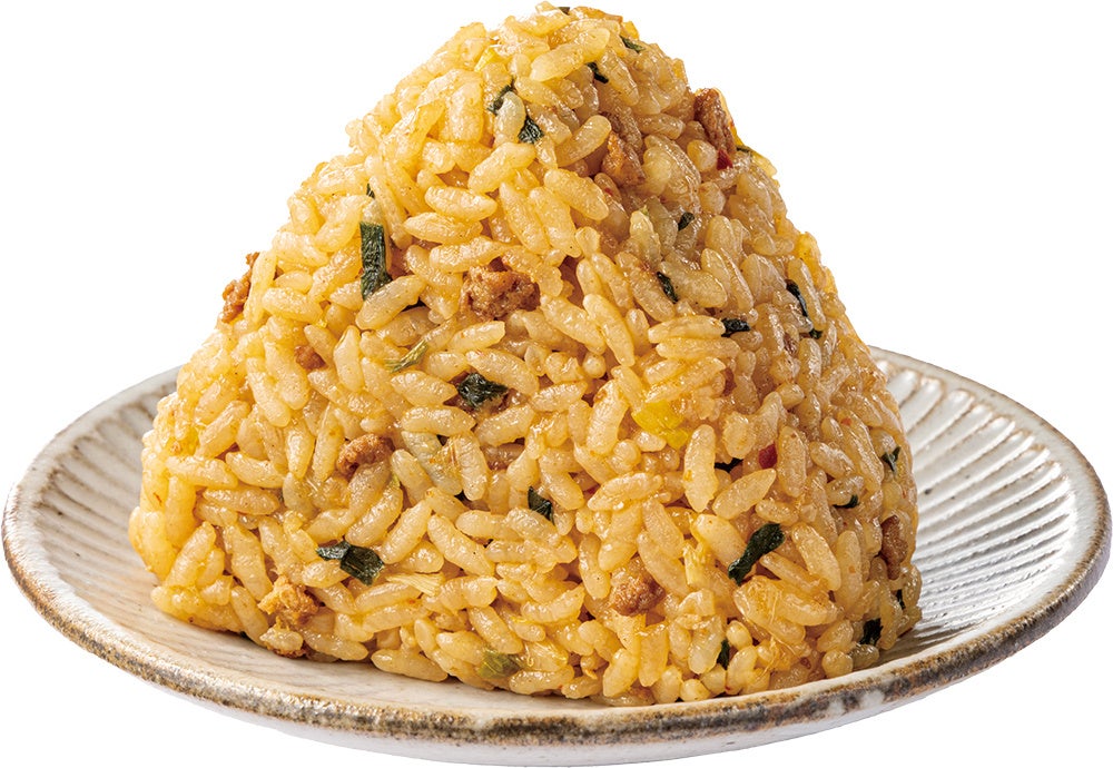 「台湾まぜそば」の追い飯文化を踏襲したおむすび。混ぜめし全体と中具のミンチに辛みが効いており、卵黄ソースと合わせることで、食べ進みの良い商品です。