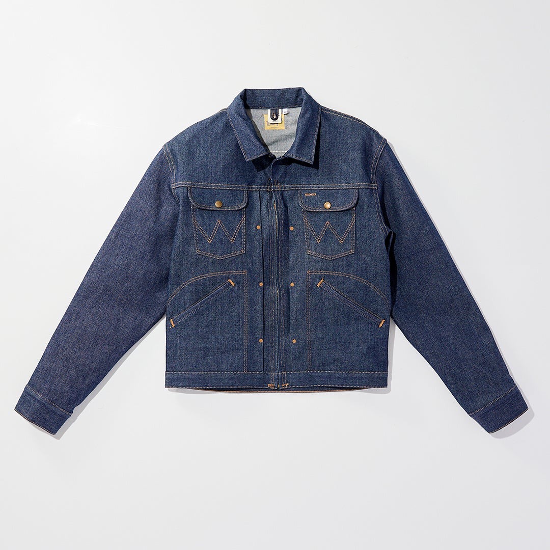 左右に付いた胸ポケット、ペン差しの仕様がボタンホール、フロントヨークのタブ、ウエストアジャスターなど実用面を追求しながら変貌を遂げたWranglerを代表するモデルの1つ。「11MWZ 1964MODEL」と同じ、専用に開発したブラウン×グリーンのラインが入ったオリジナルのセルビッジデニムを使用。セットアップで揃えたい。
