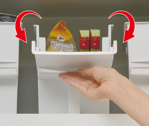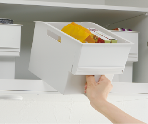 後部がカーブ形状なので、上の棚板に引っ掛からず取り出せます。
