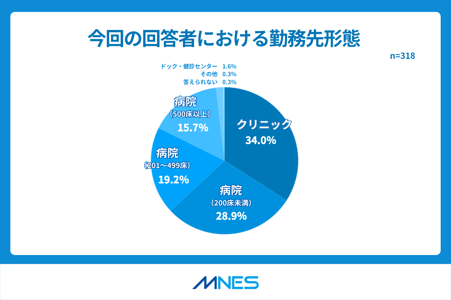 なお、勤務先形態別の結果を確認したところ、クリニックでは、91.7%と最も高い一方、中小病院(200床未満)は81.5%、中規模病院(201~499床)は80.3%にとどまりました。