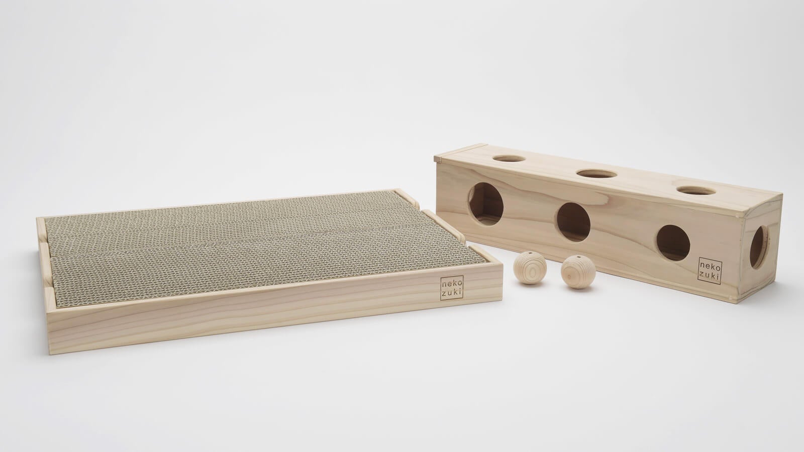 ネコの健康維持やストレスケアに欠かせない「爪とぎ」と「おもちゃ」を、岩手県花巻市の木工職人が一つひとつ丁寧に手作りしました。代表・太野とともに暮らす3頭の「ネコ社員」も商品テストに参加し、実際の使用感を確認しながら一緒に開発した商品です。約1年の開発期間を経て、ようやく完成しました。
