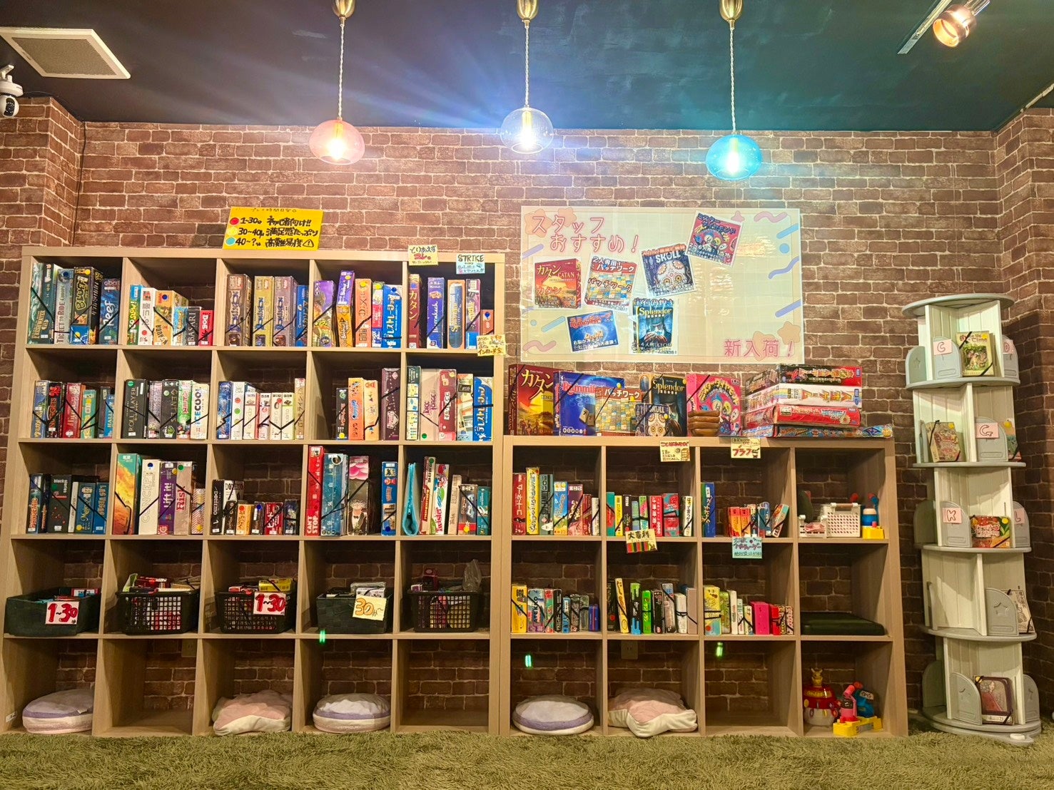 店内にはラグマットが敷かれ、ごろごろ寝転がりながら、気軽にボードゲームを楽しめる“友だちの家のような空間”を目指しています。