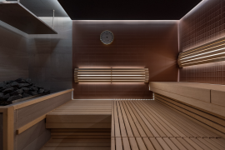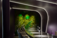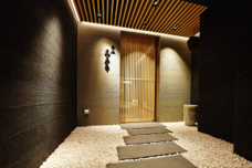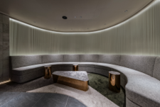 バーを併設するサウナ施設。ホテルライクな質感と先進的なデザインで、上質かつ非日常の空間に仕上げています。サウナはパブリック用とプライベート用の2種類それぞれ異なる特徴的なデザインとしました。整いスペースの間接照明は緩やかに明滅するゆらぐ演出を採用し、照明・動線・仕上げを総合的に設計し、没入感と回復感を両立しました。