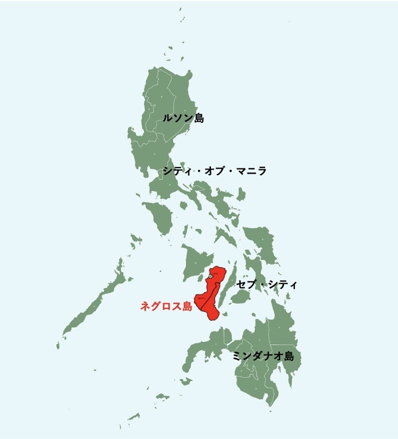 ネグロス島は、フィリピン中部・西ビサヤ地域に位置し、西側のネグロス・オクシデンタル州と東側のネグロス・オリエンタル州から構成されています。肥沃な火山性土壌と広い沖積平野を有し、古くから米、サトウキビ、トウモロコシなどの栽培が盛んに行われており、約28万ヘクタールの農地のうち、6万~6.5万ヘクタールが水田として活用されています。気候は台風の影響が比較的少ない熱帯モンスーン型で、年間を通じて安定した稲作が可能な環境が整っています。