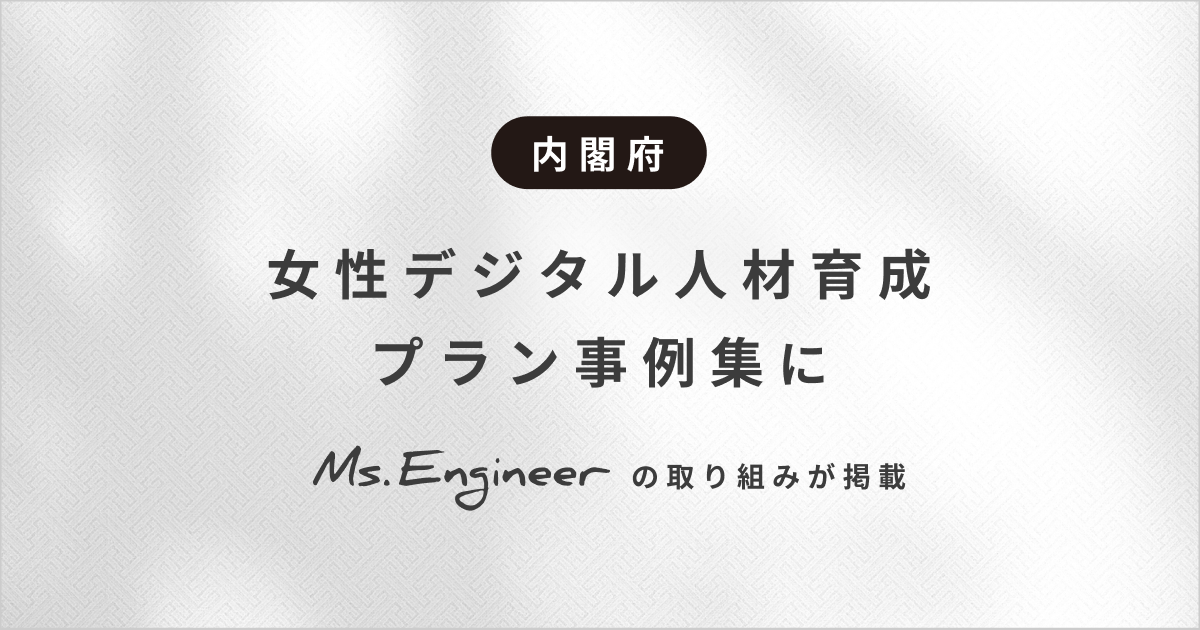 女性のAI・IT人材育成およびAIプロダクト開発を展開するMs.Engineer株式会社(本社:東京都千代田区、代表取締役社長:やまざきひとみ)は、内閣府男女共同参画局が官民の優良事例を取りまとめた「女性デジタル人材育成プラン事例集」において、掲載企業10社のうちの1社として紹介されました。