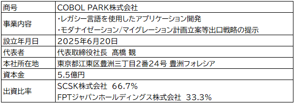 SCSKとFPTコーポレーションは、2018年にアジア太平洋地域におけるITサービス事業での包括的協働パートナーシップに関する覚書を締結し、以降、両社で協業を推進してまいりました。また、2024年10月の発表に基づき、SCSKとFPTは、ナショナルアジェンダであるレガシーシステムの継続的な運用およびマイグレーションを目指し、合弁会社である「COBOL PARK」の設立を検討・協議してまいりました。このたび、SCSKとFPTは、検討・協議の結果を踏まえ、双方の強みを活かし、メインフレームを有する企業の事業継続を支援することが社会的使命であるとの共通認識のもと、「COBOL PARK」を設立するに至りました。