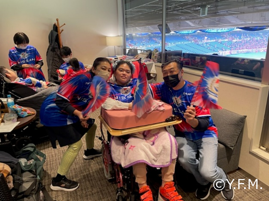 当社は、Jリーグに加盟する横浜F・マリノスのホームゲーム会場「日産スタジアムテラスボックス席」を活用し、「いちごpresentsフレンドリールーム」として、個室での観戦を必要とするお客様に提供させていただく取り組みを、2025シーズンにおいて、全4回実施しました。