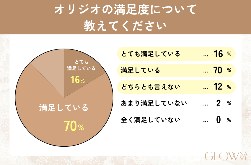 回答者のうち86%が、オリジオ施術に「満足している」と回答し、施術に対する評価の高さがうかがえます。