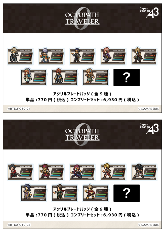 対象商品:『オクトパストラベラー0』発売記念POP UP SHOP商品
