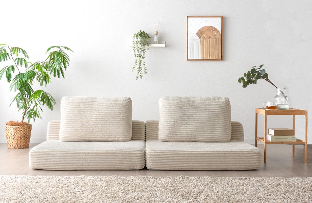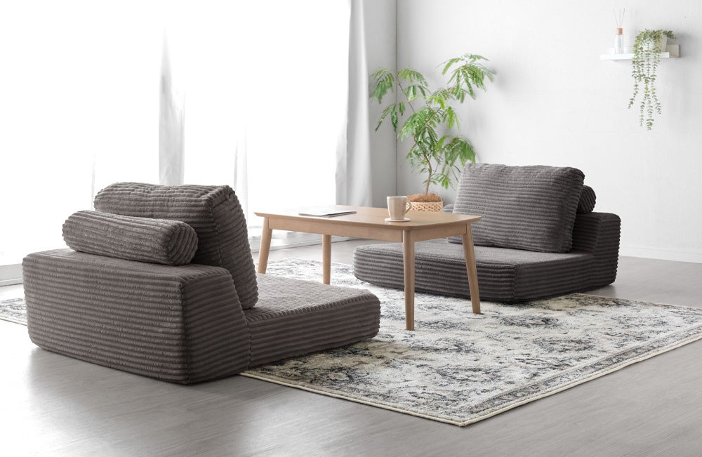 2026年の新生活シーズンに向けて今季発売開始された“圧縮梱包ソファ”の主要シリーズをご紹介いたします。【ラインナップ1:コーデュロイソファ”RIBLOW”シリーズ】