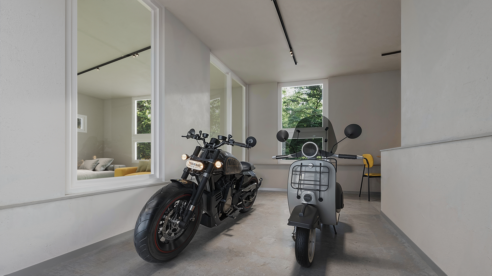 +BASEプロジェクトが手掛ける物件は、バイクの保管に最適な「屋内保管」が出来るよう、1戸につき最低1台大型バイクが駐車できる屋内ガレージスペースを提供いたします。本プロジェクトは「バイク」も大事な入居者と考えております。