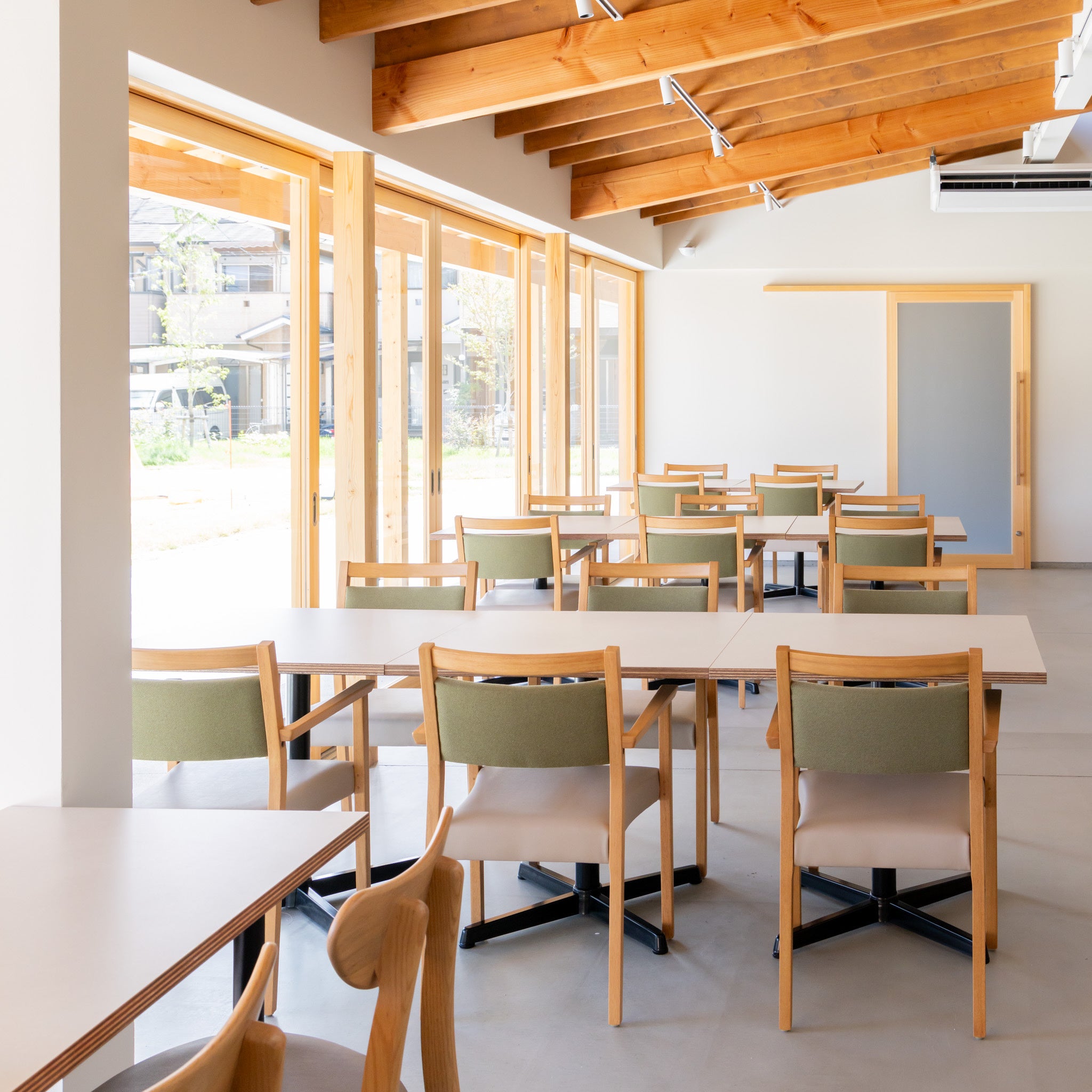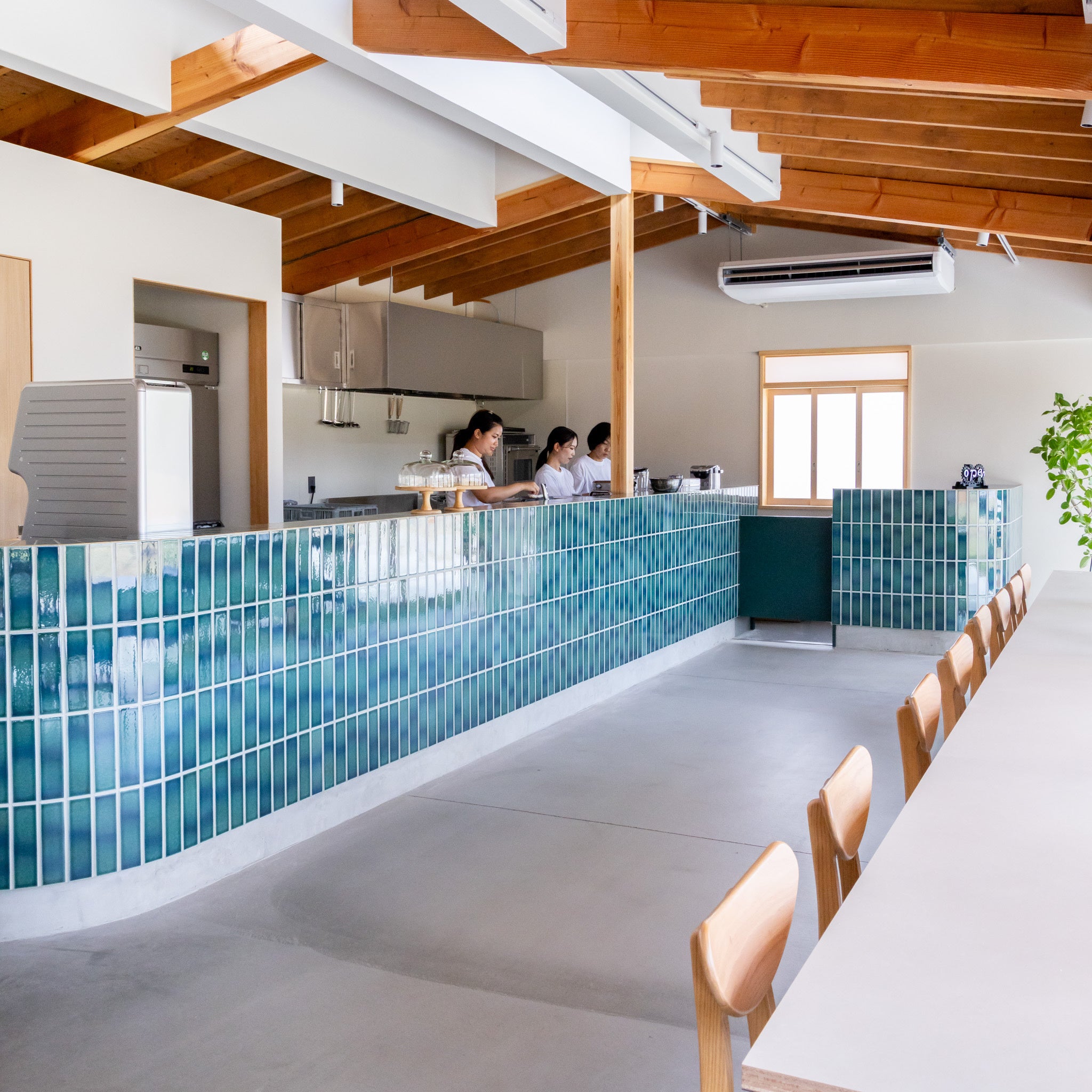カウンター席やソファー席、テラス席のテーブルも配置し、自然の光を感じる設計に。