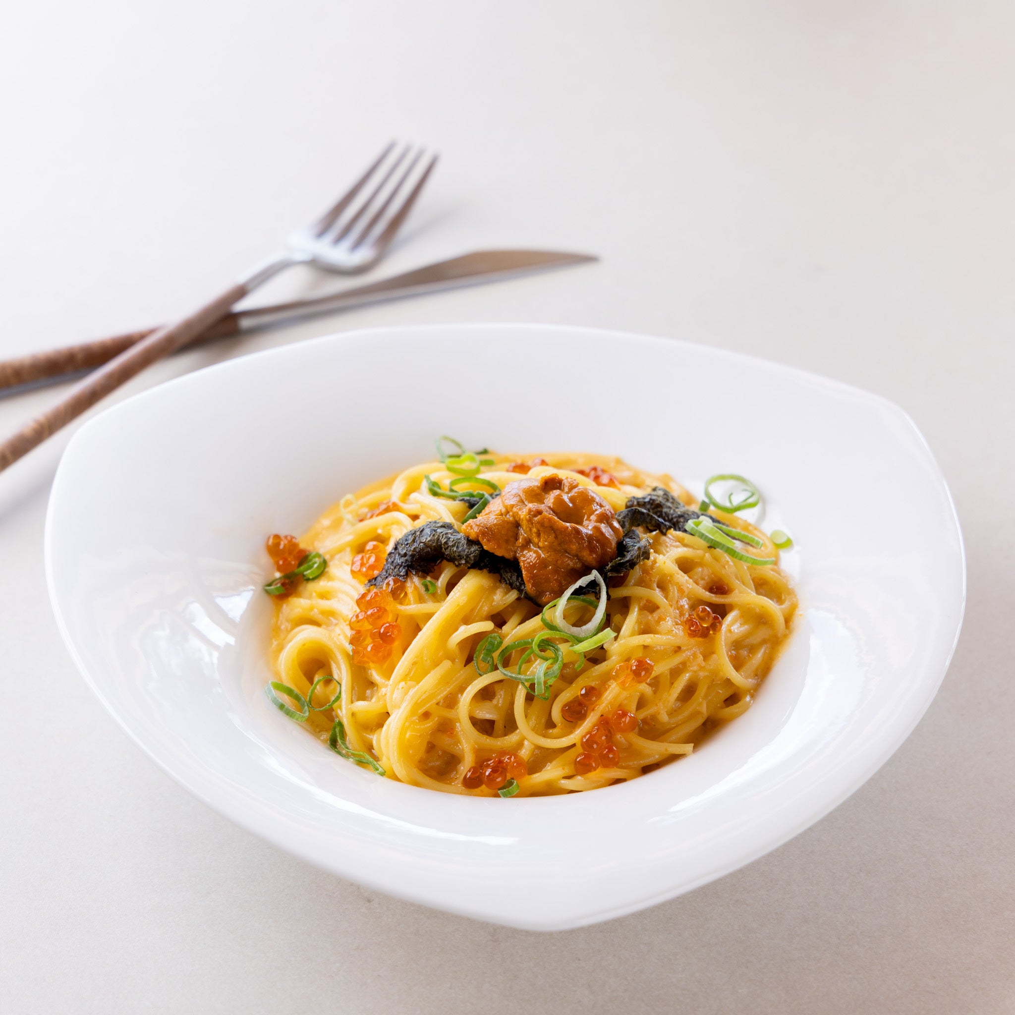 濃厚な特製ウニソースにイクラを散りばめた贅沢な一皿。
