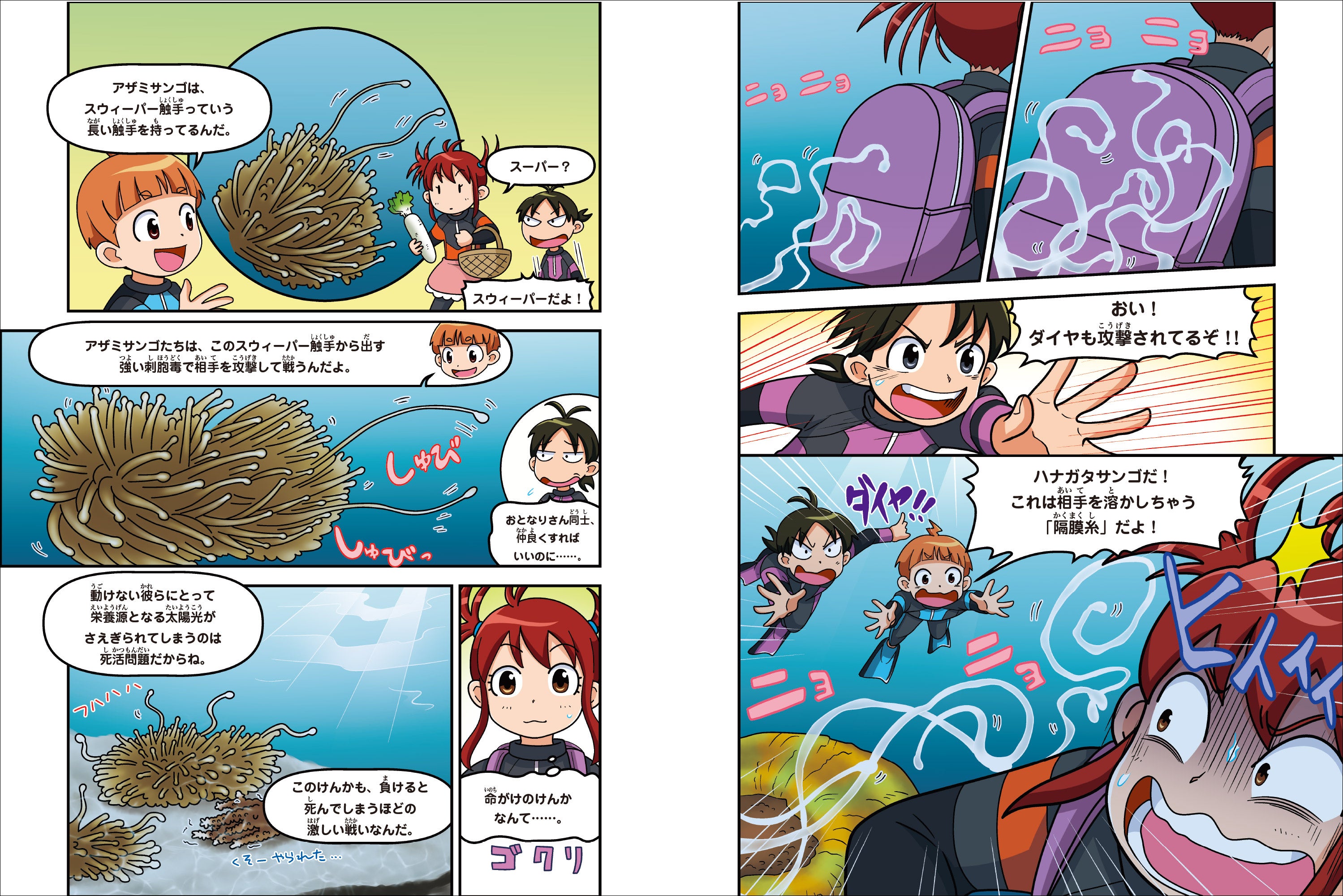 朝日新聞出版は12月12日、累計1500万部突破の「科学漫画サバイバル」シリーズ最新刊として、『海底のサバイバル2』を発売します。今回の舞台は色鮮やかなサンゴ礁の海。主人公たちは、そこでサンゴに「攻撃」されるなど予想外のピンチに見舞われるほか、海底の不思議な生き物たちと出合います。