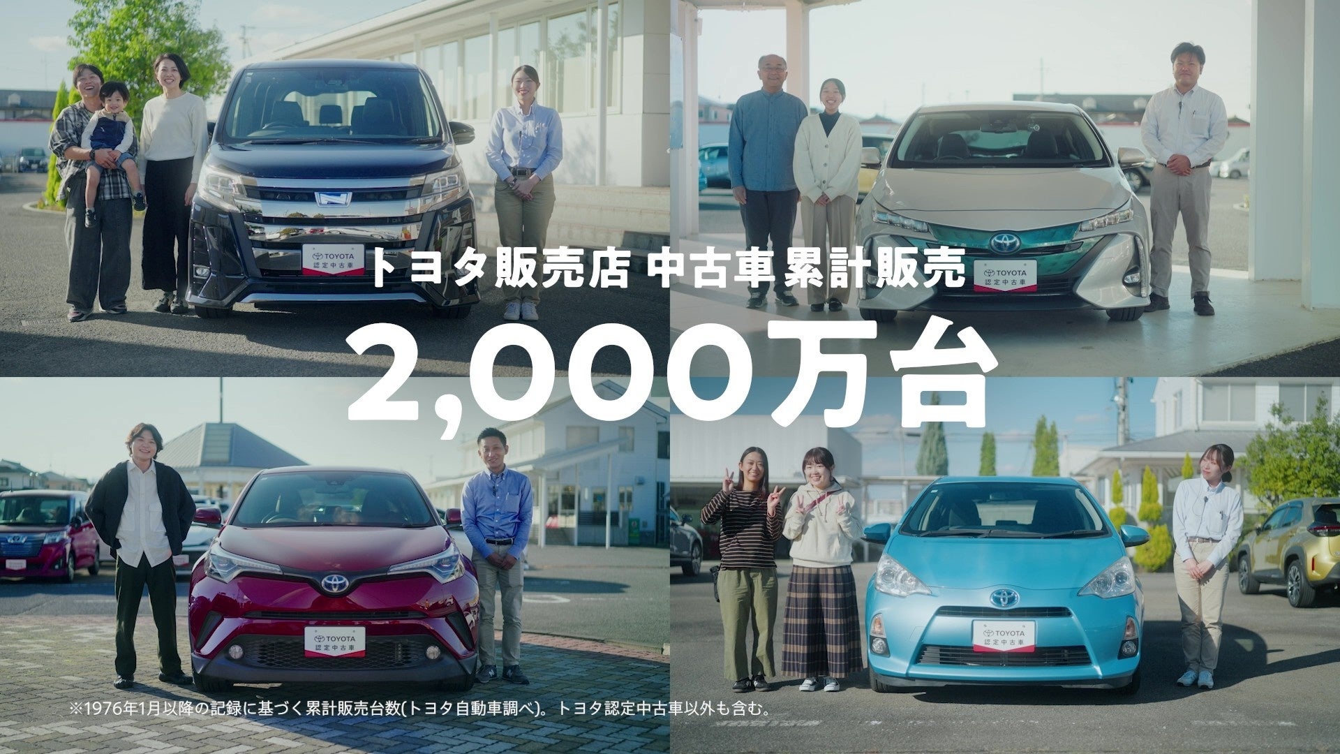 本CMを通じて、お客様一人ひとりが安心して中古車を選び、購入後も快適な中古車ライフを過ごしていただけることを目指してまいります。今後も、トヨタのお店の安心感をそのままに、オンラインによるサービスを融合させた新しいサービスを通じて、より多くのお客様に「トヨタのお店の中古車」の魅力をお届けしてまいります。