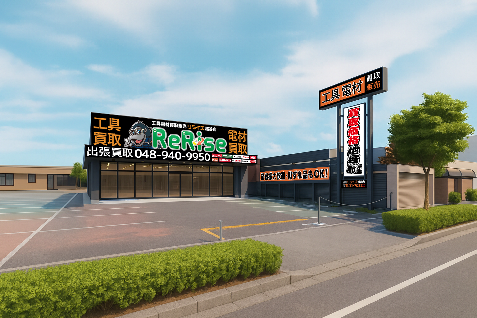 工具電材買取販売リライズは「人と人とを豊かにつなぐ」をスローガンに中古工具の売買を軸とした循環型社会貢献の実現に向け、千葉県内に3店舗、25年11月には販路を拡大し埼玉県蓮田市へ初出店を致しました。