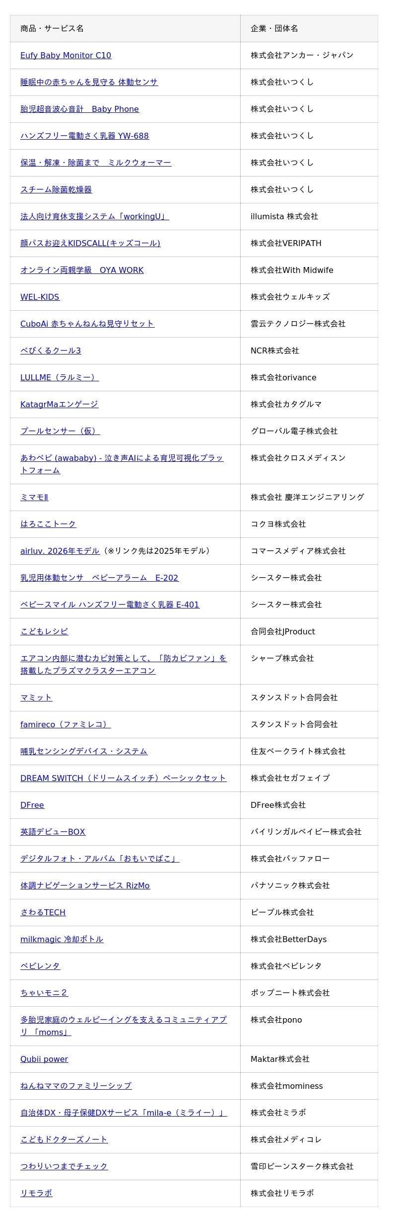 ※企業団体名 五十音順、商品・サービス名クリックで商品Webページへ[表: https://prtimes.jp/data/corp/26733/table/47_1_0f943be4244f5bac88670ead837ac85b.jpg?v=202512120346 ]