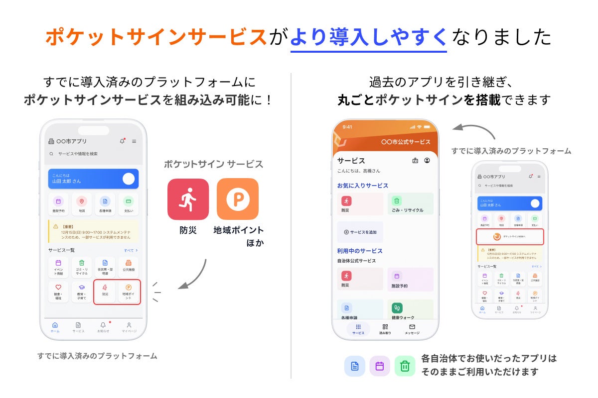 こうした「既存アプリを活かしたまま施策を拡充したい」というニーズに応えるため、当社はポケットサインをネイティブアプリに加えてWeb形式でも提供し、既存サービスとも手軽かつ安全に連携できる住民サービス基盤として拡張することを決定しました。