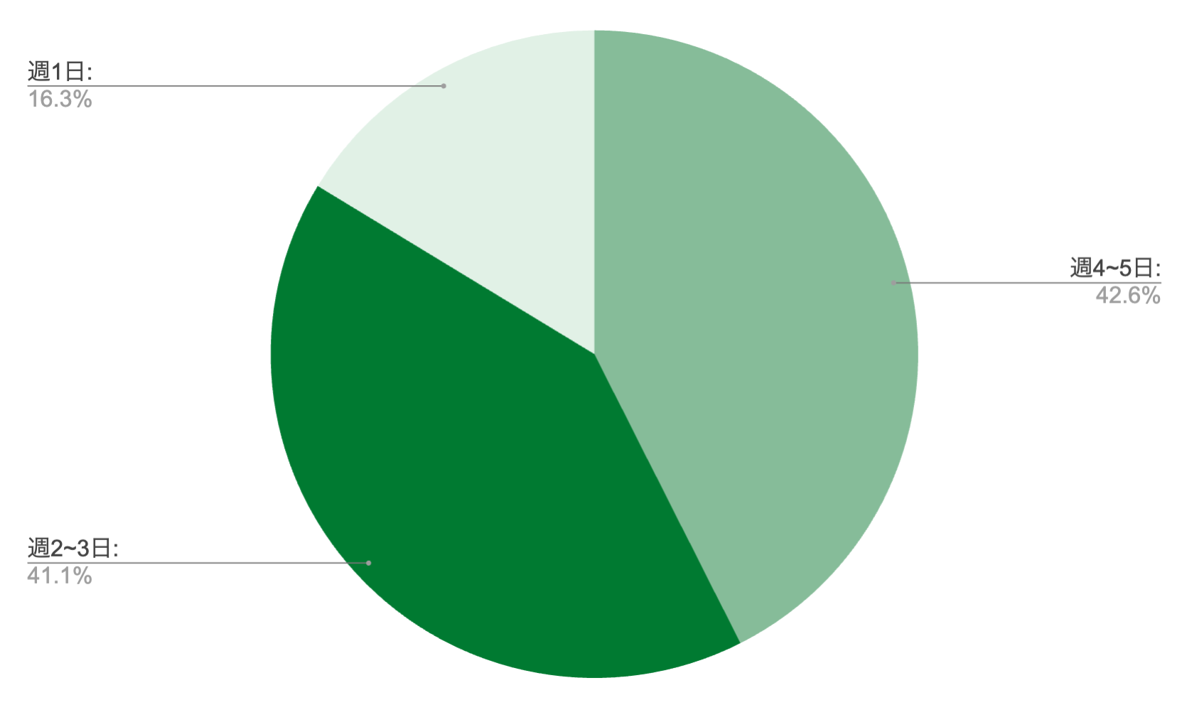 週4~5日が42.6%、週2~3日が41.1%と同程度で、非常にバランスの取れた働き方が可能です。週1日も16.3%と他職種と比べて高い割合で、経営層への定期的なアドバイザリーやスポットコンサルティングとしての参画も多くあります。高度な専門性を持つエグゼクティブやコンサルタントは、限られた時間で最大の価値を提供できるため、週1日でも高単価が設定されています。プロジェクトの性質や企業のニーズに応じて、フルタイム関与から顧問的な関わり方まで、多様な稼働形態を選べる柔軟性の高い職種です。