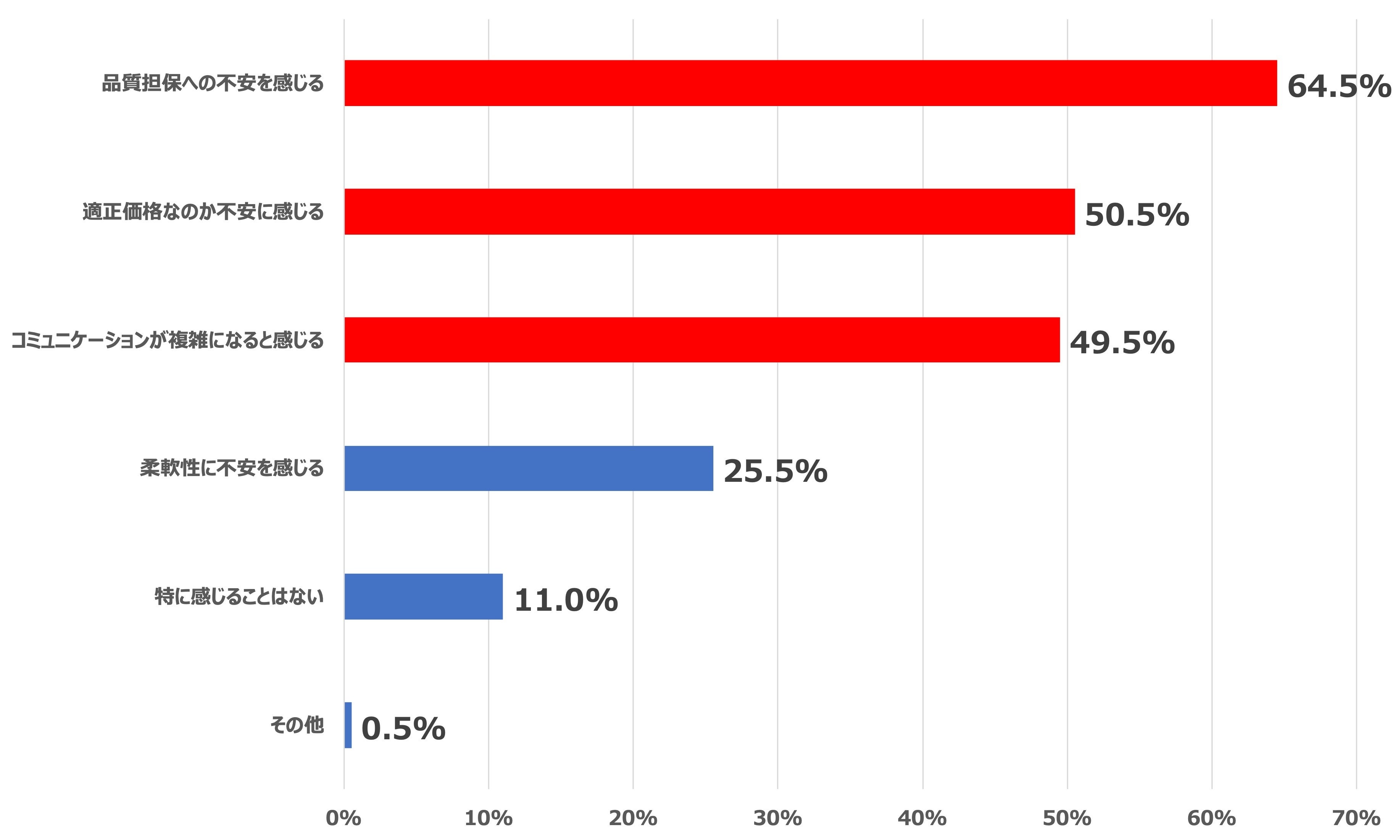 2. “過重下請け構造”に対する不安、1位「品質担保への不安を感じる」、2位「適正価格なのか不安に感じる」、3位「コミュニケーションが複雑になると感じる」