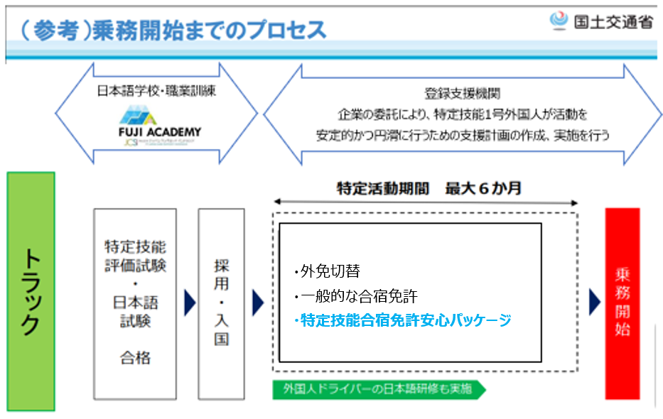 ・トラックドライバー不足に対し政府は「5年間で19,000人の特定技能外国人材を受入」を計画・「特定技能 自動車運送業」制度では、入国後の「特定活動期間6ヵ月」での日本の免許取得