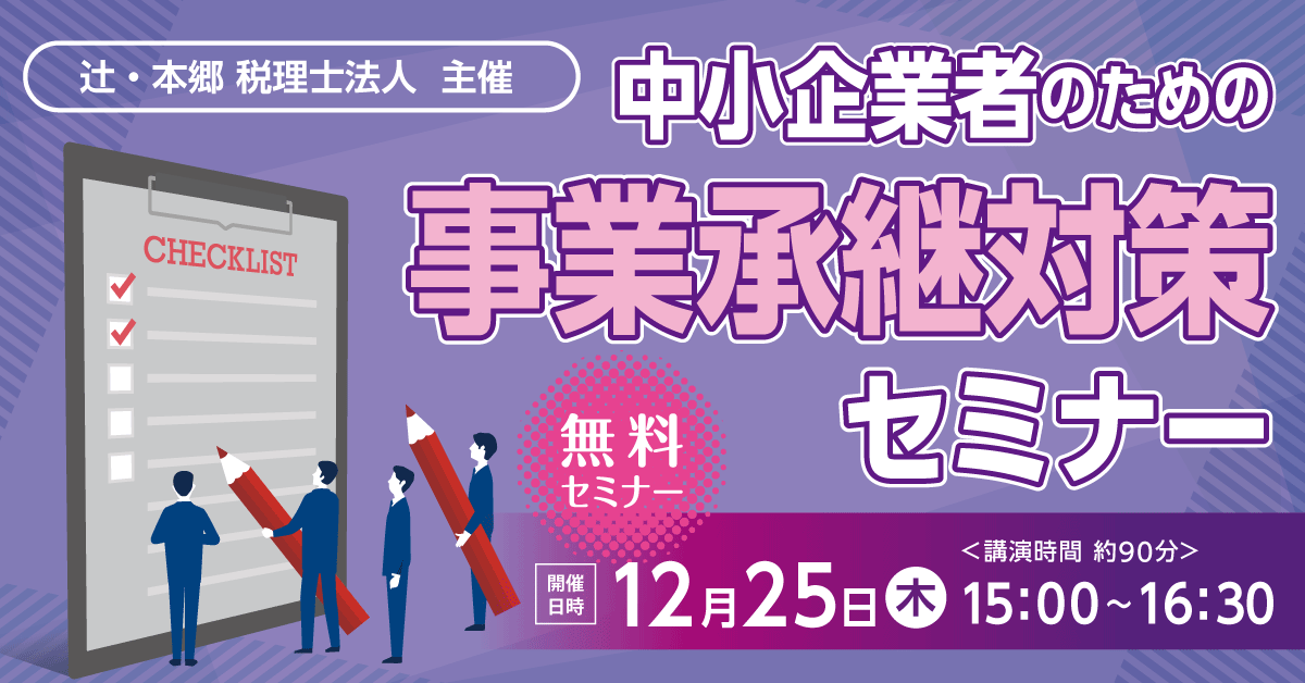 辻・本郷 税理士法人(本社:東京都新宿区、理事長:桑木小恵子)は、2025年12月25日に「中小企業者のための事業承継対策セミナー」を開催いたします。(会場:萩・明倫学舎 本館 復元教室)中小企業の経営において、事業承継は避けて通れない重要なテーマです。